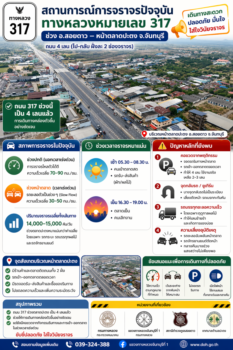 ข้อมูลการจราจรถนนสาย ๓๑๗ (จันทบุรี – สระแก้ว) ช่วงที่กำลังก่อสร้าง