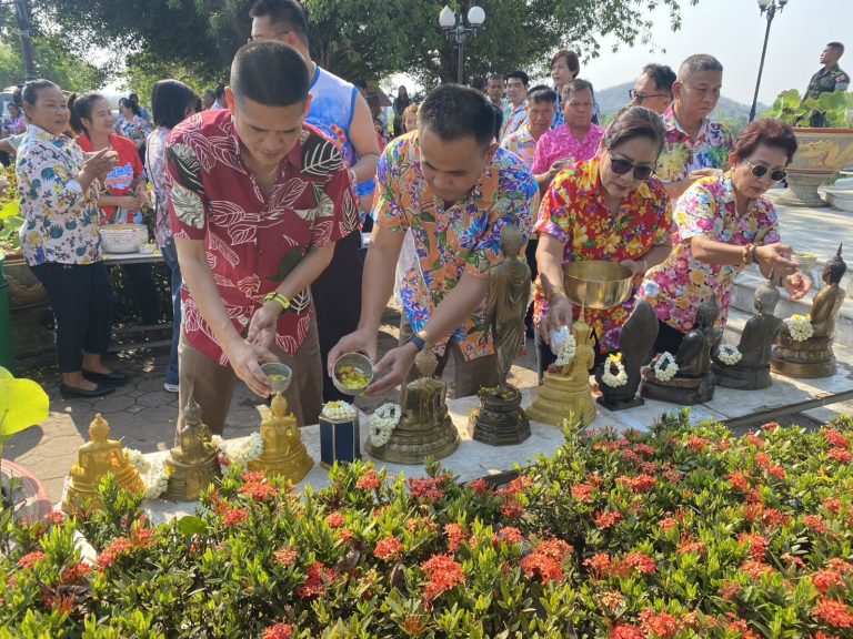 ข้าราชการตำรวจสอยดาว พร้อมด้วยแม่บ้านตำรวจ ร่วมประกอบพิธีสรงน้ำพระพุทธโสธร และพิธีรดน้ำดำหัว ขอพรจากผู้บังคับบัญชา เนื่องในโอกาสเทศกาลสงกรานต์ ๒๕๖๙