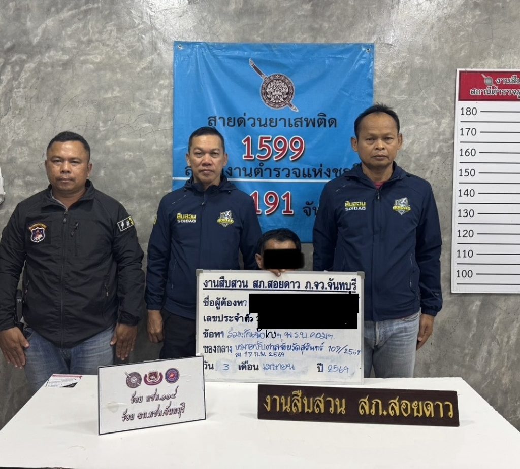 พร้อมด้วย ชุดสืบสวน สภ.สอยดาว,ร้อย ตชด.๑๑๔,กก.สส.ภ.จว.จันทบุรี,กก.สส.ภ.๒,บก.สส.ภ.๓,สภ.แก้งสนามนาง,สภ.เมืองสุรินทร์ ได้ร่วมกันทำการจับกุม