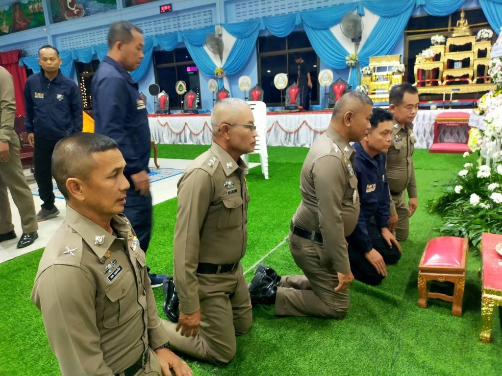 ข้าราชการตำรวจสอยดาวร่วมพิธีสวดพระอภิธรรมบิดา พ.ต.ท.สุวิจักษณ์ เรืองนวมดี รอง ผกก.สืบสวน สภ.สอยดาว 17/01/2569 โดย admin / ไม่มีหมวดหมู่,ข่าวกิจกรรม,งานจราจร,งาน จร.เดือน ม.ค.69,งานป้องกันปราบปราม,งาน ป.เดือน ม.ค.69,งานอำนวยการ,งาน อก.เดือน ม.ค.69,งานสอบสวน,งานสอบสวน เดือน ม.ค.69,งานสืบสวน,งานสืบสวน เดือน ม.ค.69 วันศุกร์ที่ ๑๖ ม.ค.๖๙ เวลา ๑๙.๐๐ น.าราชการตำรวจ สภ.สอยดาว ร่วมพิธีสวดพระอภิธรรมศพ พ.ต.ท.วิเชียร นวมดี (อดีตผบ.ร้อยค่ายพระรามหก) บิดาของ พ.ต.ท.สุวิจักขณ์ เรืองนวมดี รอง ผกก.สส.สภ.สอยดาว ณ วัดโคกตับเป็ด ต.ดอนคลัง อ.ดำเนินสะดวก จ.ราชบุรี