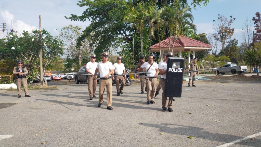 งานป้องกันปราบปรามซักซ้อมแผนเผฃิญเหตุบุคคลคุ้มคลั่ง 5 มี.ค.69 06/03/2569 โดย admin / ไม่มีหมวดหมู่,ข่าวกิจกรรม,งานป้องกันปราบปราม,งาน ป.เดือน มี.ค.69 วันที่่ ๕ มี.ค.๖๙ เวลา ๑๕.๐๐ น. พ.ต.ท.ก้องเกียรติ เฟื้องทอง รอง ผกก.ป.สภ.สอยดาว พร้อมข้าราชการตำรวจสายงานป้องกันปราบปราม สภ.สอยดาว ซักซ้อมแผนเผชิญเหตุ บุคคลคลุ้มคลั่ง ในพื้นที่ บริเวณหน้าที่ทำการ สภ.สอยดาว