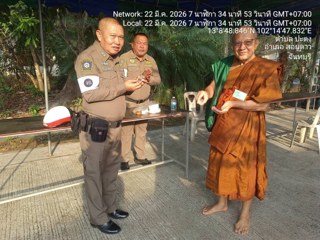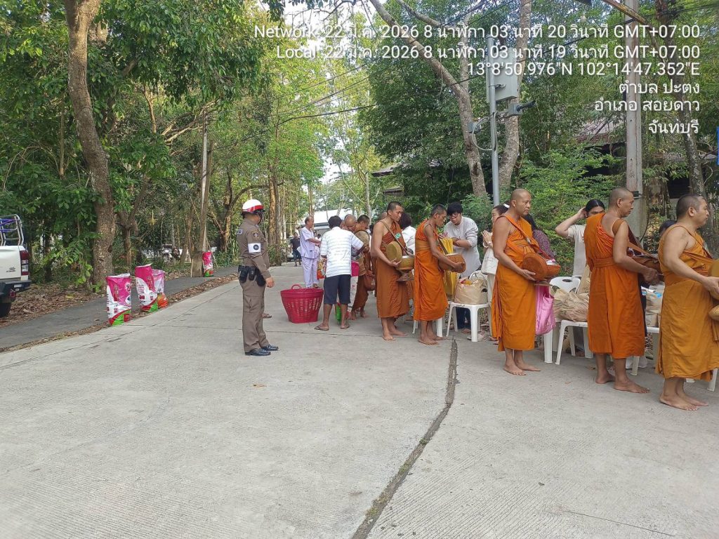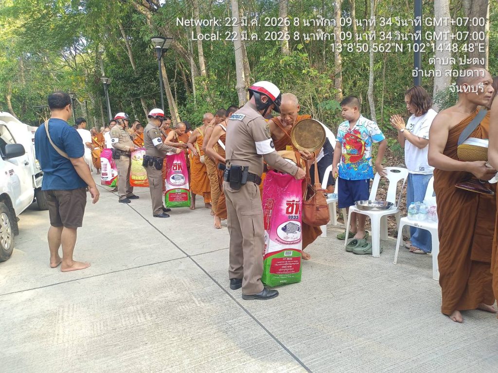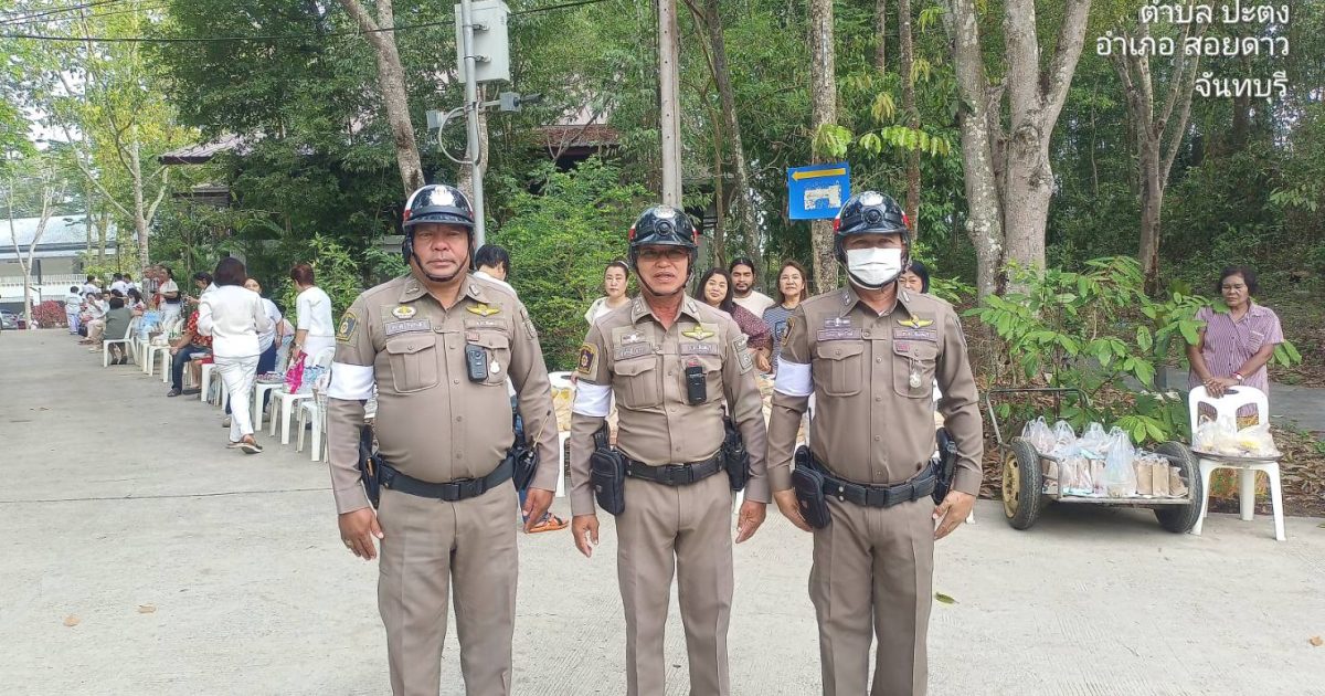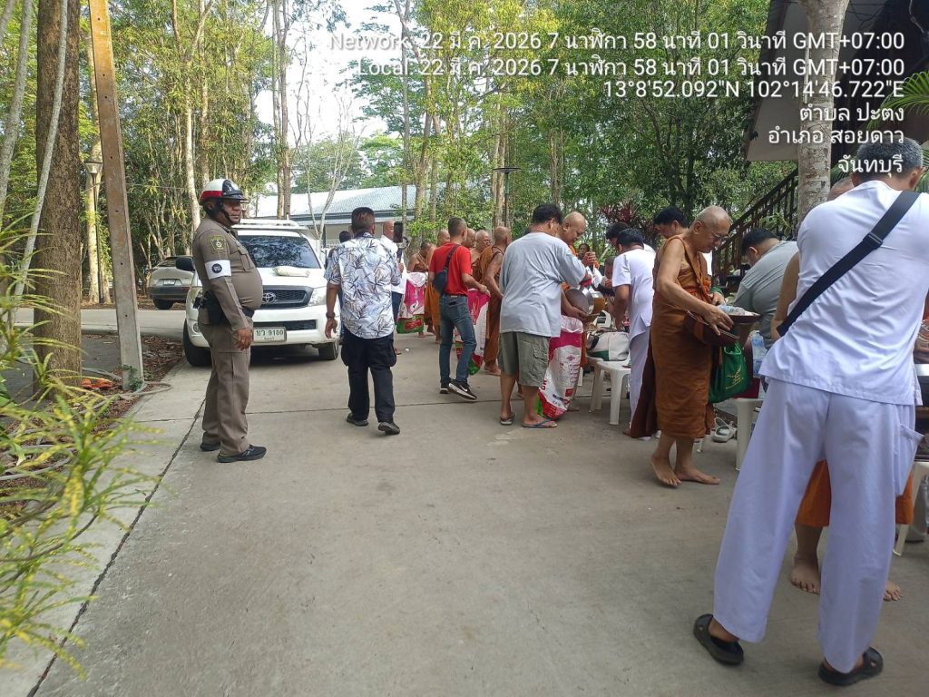 จราจรอำนวยความสะดวกการจราจรวัดเทพประทาน(อธิพร) 22/03/2569 โดย admin / ไม่มีหมวดหมู่,ข่าวกิจกรรม,งานจราจร,งาน จร.เดือน มี.ค.69 วันนี้(๒๒ มี.ค.๖๙) เวลา ๐๗.๐๐ น.ภายใต้การอำนวยการของ🟡 พ.ต.อ.เกริกฤทธิ์ สายวรรณะ ผกก.สภ.สอยดาว🟡 พ.ต.ท.ก้องเกียรติ เฟื้องทอง รอง ผกก.ป.สภ.สอยดาว🟡 พ.ต.ท.ประเทือง เยาวพันธ์ สวป.สภ.สอยดาวควบคุมการปฏิบัติโดย สั่งการให้ ร.ต.อ.วิรัตน์ เกตุสุวรรณ์ รอง สวป.สภ.สอยดาว ปฏิบัติหน้าที่ร้อยเวร ๖๐ พร้อมจราจร ว.๔ อำนวยความสะดวกการจราจรพิธีตักบาตรข้าวสารอาหารแห้ง ณ วัดเทพประทาน(อธิพร) เหตุการณ์ทั่วไปปกติ