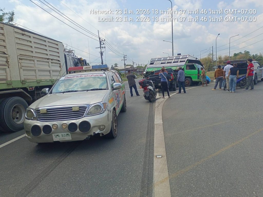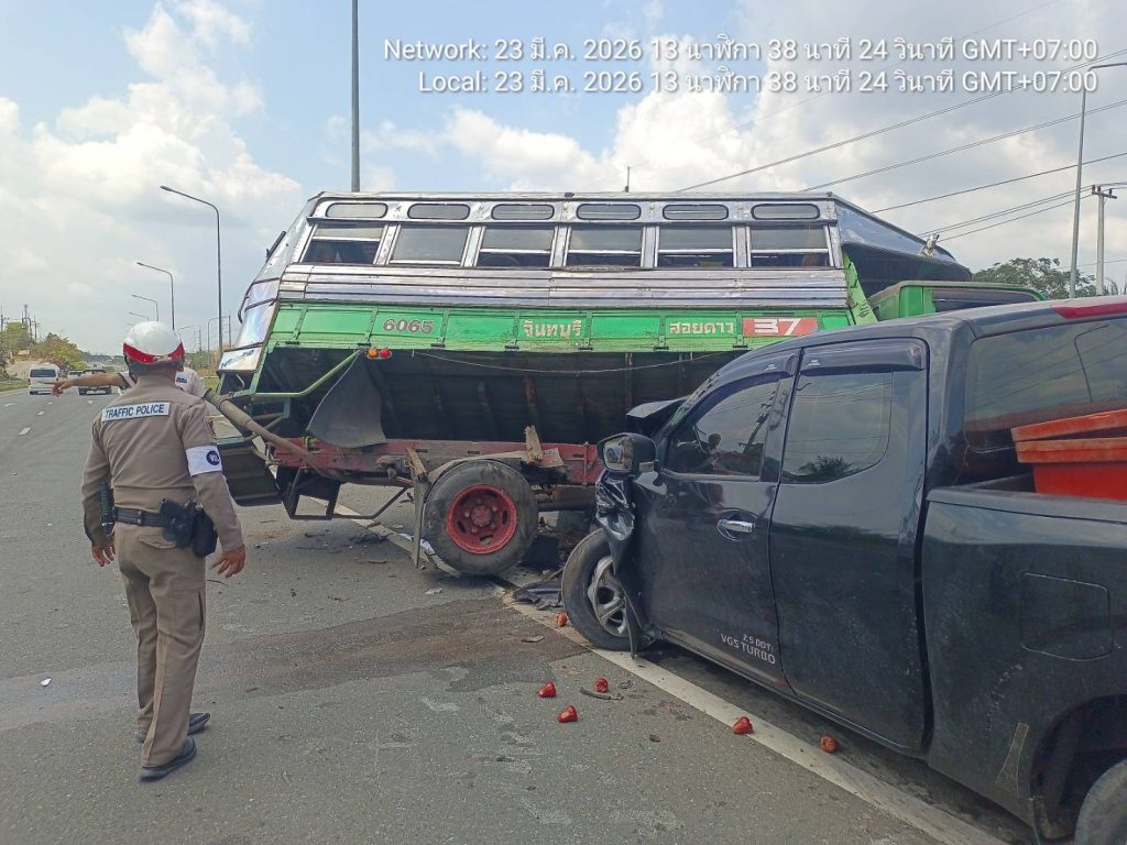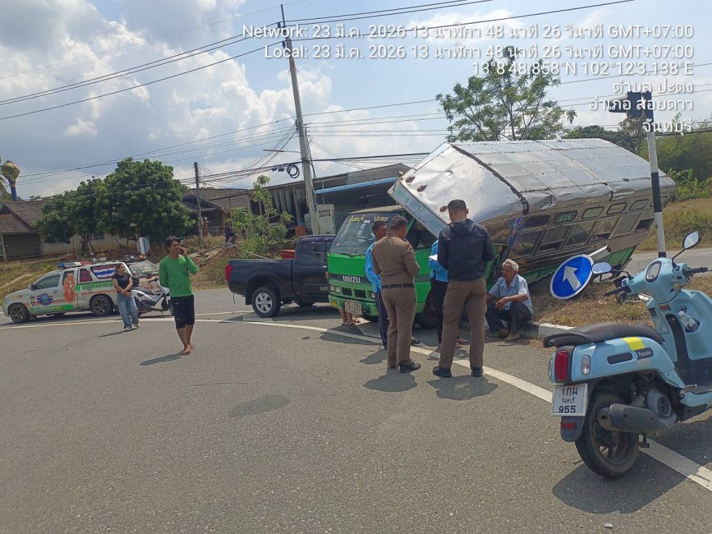 จราจรอำนวยความสะดวกการจราจรเหตุ ว.๔๐ เพื่อป้องกันเหตุซ้ำซ้อน 23/03/2569 โดย admin / งานจราจร,งาน จร.เดือน มี.ค.69 วันนี้(๒๓ มี.ค.๖๙) เวลา ๑๓.๕๐ น.ร.ต.อ.สุรศักดิ์ บุญมา รอง สว.(ป.)สภ.สอยดาว ปฏิบัติหน้าที่จราจร ออกอำนวยความสะดวกการจราจรเหตุรถยนต์โดยสารประจำทางกับรถยนต์กระบะ บริเวณยูเทิร์นซอยพัฒนาร่วมใจ มีผู้ได้รับบาดเจ็บ ๒ ราย กีดขวางการจราจร