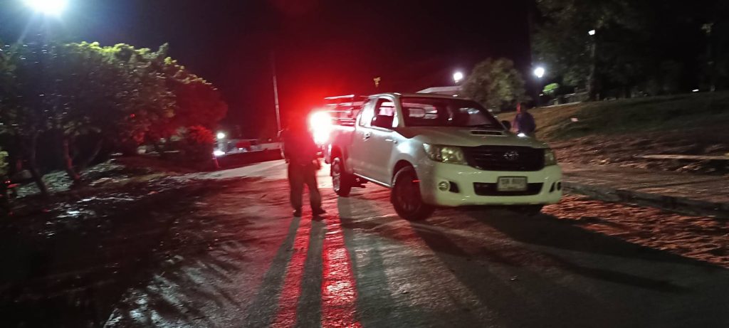 จราจรให้ความช่วยเหลือรถยนต์กระบะตกถนนที่กำลังก่อสร้าง 10/10/2567 โดย admin / ไม่มีหมวดหมู่,ข่าวกิจกรรม วันที่ ๙ ต.ค.๖๗ เวลา ๒๑.๐๐ น.สายตรวจจราจร โดย ร.ต.ท.สุรศักดิ์ ผากา รอง (สว.)จร.สภ.สอยดาว ระหว่างปฏิบัติหน้าที่พบรถยนต์กระบะประสบเหตุตกถนน ที่อยู่ในระหว่างการก่อสร้าง บริเวณหน้าหอประชุมอำเภอสอยดาว ทำให้ไม่สามารถขับขี่ต่อไปได้ จึงได้ประสานขอรับการสนับสนุนกำลังจาก จนท.อส.ที่อยู่ใกล้เคียงบริเวณดังกล่าว พร้อมประชาชนที่ขับรถผ่านมาให้การช่วยเหลือ รถยนต์สามารถเดินทางต่อไปได้