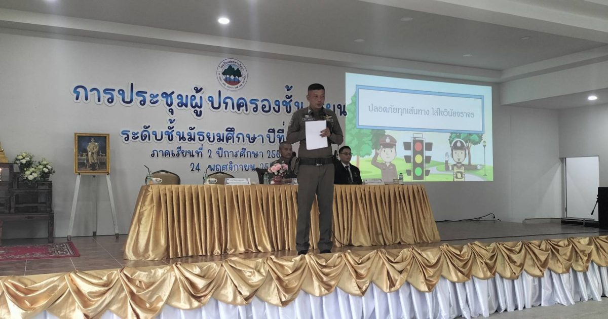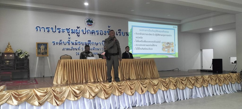 จราจร สภ.สอยดาว บรรยายความรู้เรื่องกฎจราจรและความปลอดภัย 25/11/2567 โดย admin / ไม่มีหมวดหมู่,ข่าวกิจกรรม วันที่ ๒๔ พ.ย.๖๗ เวลา ๑๐.๐๐ น.ภายใต้การอำนวยการของ ♦️พ.ต.อ.ไพทูรย์ ปาปะคังผกก.สภ.สอยดาว♦️พ.ต.ท.ก้องเกียรติ เฟื้องทอง รอง ผกก.ป.สภ.สอยดาว♦️พ.ต.ท.นภดล ลับเหลี่ยม สวป.สภ.สอยดาว ควบคุมการปฏิบัติโดยมอบหมายให้ ร.ต.อ.วิรัตน์ เกตุสุวรรณ์ รองสวป.สภ.สอยดาว,ด.ต.สมพร จันทร์เจ้า ผบ.หมู่ ปฯ บรรยายความรู้เรื่องจราจรและการสวมหมวกนิรภัย การขับรถแข่งรถ อุบัติเหตุบนท้องถนน แก่ครูและผู้ปกครองนักเรียนชั้น ม.๑-๖ รร.สอยดาววิทยา ต.ทรายขาว อ.สอยดาว จ.จันทบุรี ภาคเรียนที่ ๒/๒๕๖๗