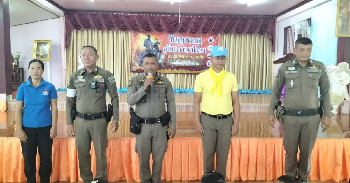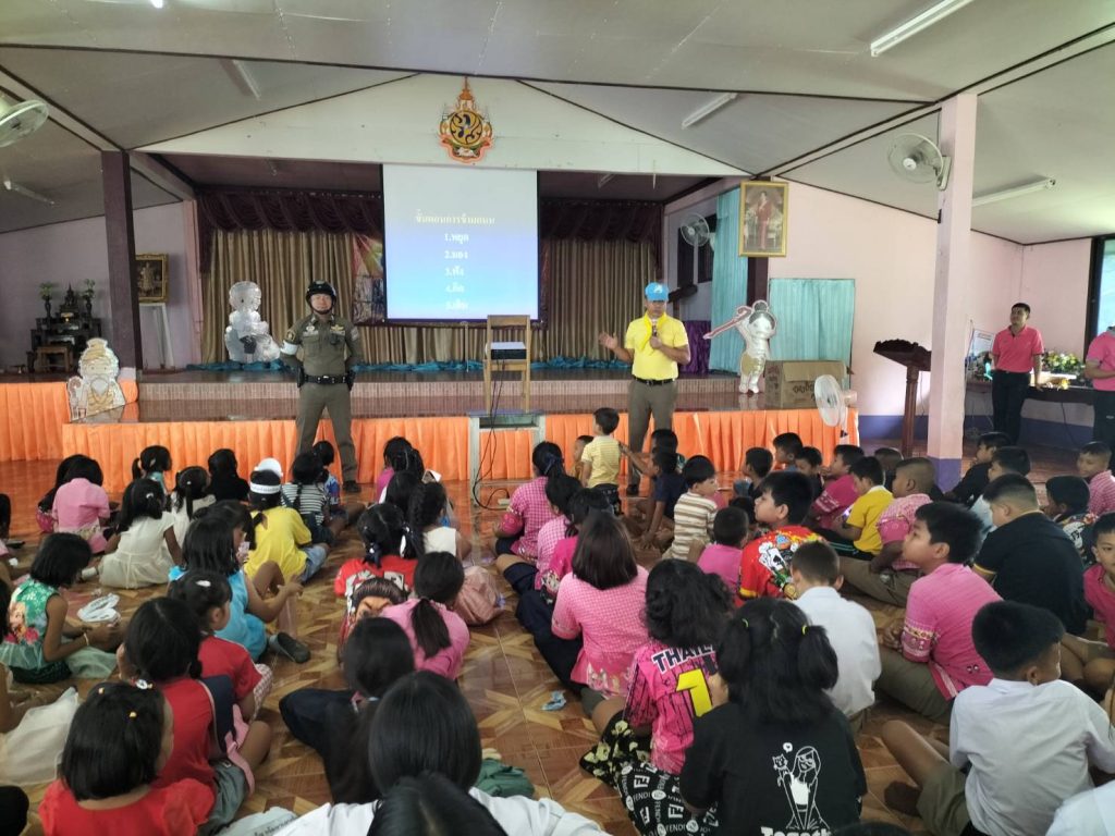 ชุด ชมส.สภ.สอยดาว ให้ความรู้แก่นักเรียน รร.บ้านไทรงามในวันต่อต้านยาเสพติดโลก 26/06/2567 โดย admin / ไม่มีหมวดหมู่,ข่าวกิจกรรม # ชุด ชมส.และชุดจิตอาสาให้ความรู้นักเรียน#วันนี้ ๒๖ มิ.ย.๖๗ เวลา ๐๙.๐๐-๑๒.๐๐ น. ชุด ชมส.สภ.สอยดาว ประกอบด้วย ๑.พ.ต.ท.ศรรวริศ จันทเขต สว.อก.สภ.สอยดาว ๒.ร.ต.อ.วิรัตน์ เกตุสุวรรณ์ รอง สวป.สภ.สอยดาว ๓.ด.ต.สมพร จันทร์เจ้า ผบ.หมู่(ป.)สภ.สอยดาว ๔.ด.ต.รักพงษ์ เสริมพงษ์ศิริ ผบ.หมู่(จร.)สภ.สอยดาว เป็นวิทยากรให้ความรู้ เกี่ยวกับ-ยาเสพติดให้โทษ(วันต่อต้านยาเสพติดโลก)-กฎหมายจราจร-ฝึกท่าสัญญาณจราจรมือและนกหวีด-จิตอาสาพัฒนา-สถาบันชาติ ศาสนาและพระมหากษัตริย์-ปลูกฝังการมีวินัย รับผิดชอบต่อหน้าที่ การเคารพกฎหมาย ความสามัคคีและการมีน้ำใจเอื้อเฟื้อเผื่อแผ่ให้แก่นักเรียนชั้นอนุบาลถึงชั้นประถมศึกษาปีที่ ๖ จำนวน ๑๒๙ คน ณโรงเรียนบ้านไทรงาม ต.ทับช้าง อ.สอยดาว จ.จันทบุรี พร้อมนำไอศกรีมและขนมไปแจกจ่ายให้แก่เด็กนักเรียนด้วย