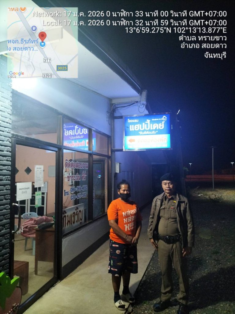 วันนี้(๑๗ ม.ค.๖๙) เวลา ๐๐.๐๖ น. ภายใต้การอำนวยการของ พ.ต.อ.เกริกฤทธิ์ สายวรรณะ ผกก.สภ.สอยดาว