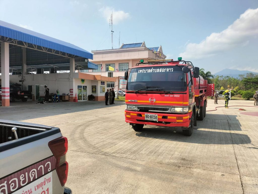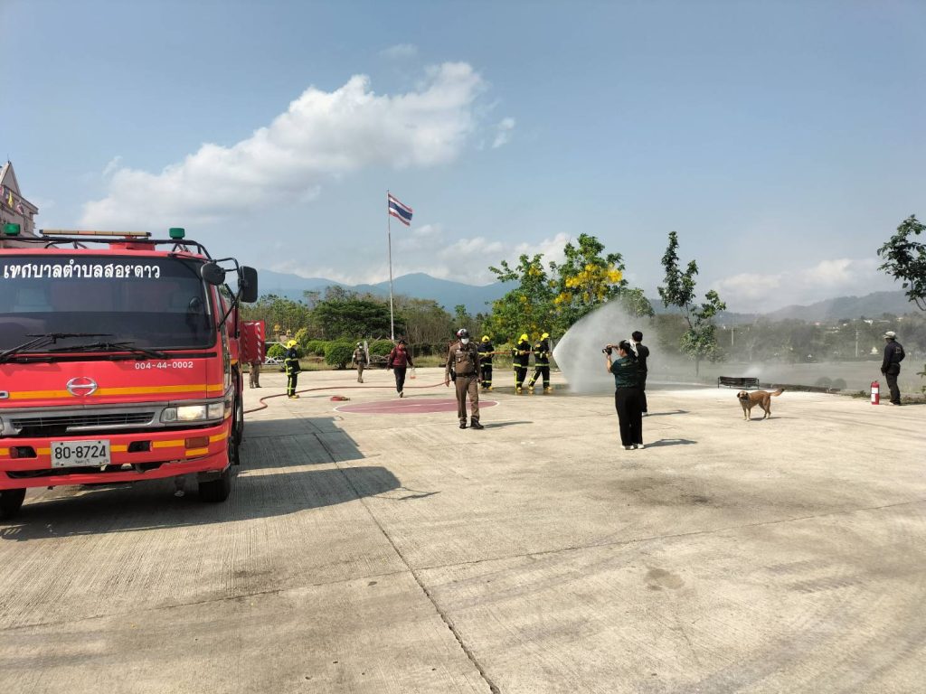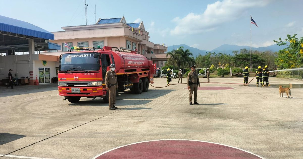 วันนี้(๒๕ มี.ค.๖๙) เวลา ๐๙.๓๐ น. งานป้องกันและบรรเทาสาธารณภัยเทศบาลตำบลสอยดาว ซ้อมแผนระงับอัคคีภัยประจำเดือนมีนาคม ๒๕๖๙