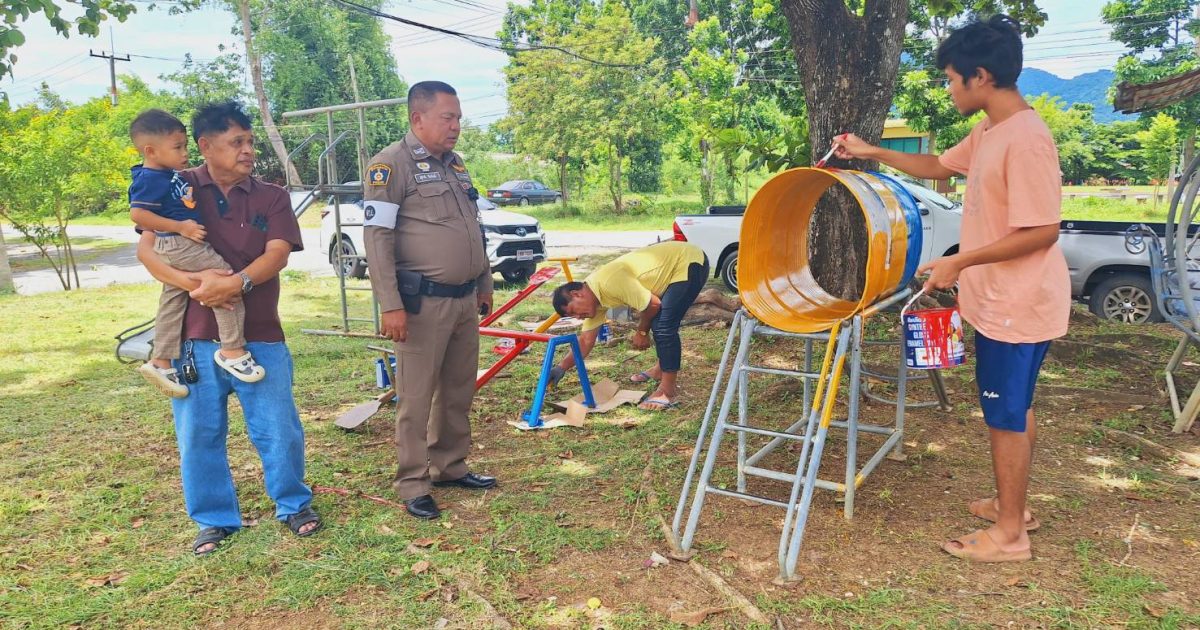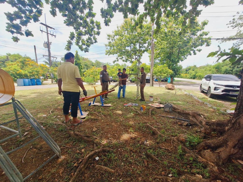 นายสมเกียรติ แซ่จง นายธนชัย ตั้งสมบูรณ์ผล กต.ตร.สภ.สอยดาว นำช่างมาทาสีอุปกรณ์สนามเด็กเล่นบริเวณหน้า สภ.สอยดาว 10/06/2567 โดย admin / ไม่มีหมวดหมู่,ข่าวกิจกรรม วันที่ ๙ มิ.ย.๖๗ เวลา ๑๑.๐๐ น.นายสมเกียรติ แซ่จง,นายธนชัย ตั้งสมบูรณ์ผล กต.ตร.สภ.สอยดาว ได้นำช่างมาทาสีอุปกรณ์สนามเด็กเล่นบริเวณหน้า สภ.สอยดาว เพื่อให้เกิดความสวยงาม เนื่องจากสีเดิมซีดจางแล้ว