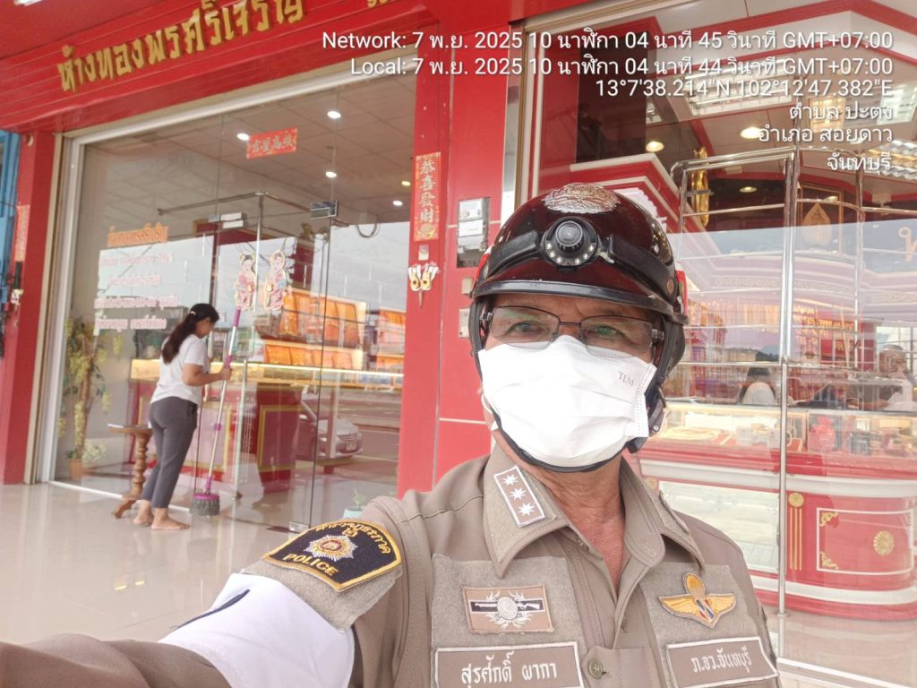 ผลการปฏิบัติสายงานจราจร เดือน พ.ย.68 07/11/2568 โดย admin / งานจราจร,งาน จร.เดือน พ.ย.68 วันนี้(๗ พ.ย.๖๘) เวลา ๑๐.๐๐ น.ว่าที่ ร.ต.อ.สุรศักดิ์ ผากา รอง สว.(ป.) สภ.สอยดาว ออกตรวจการจราจรและร้านทองในพื้นที่รับผิดชอบ การจราจรคล่องตัว เหตุการณ์ทั่วไปปกติ