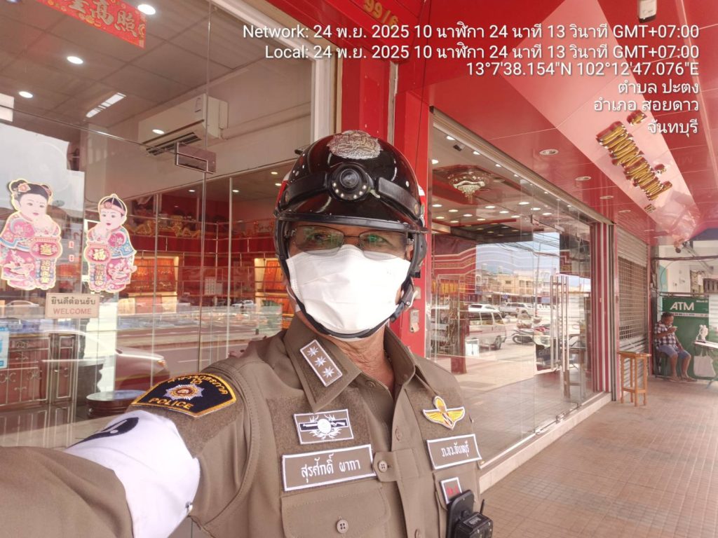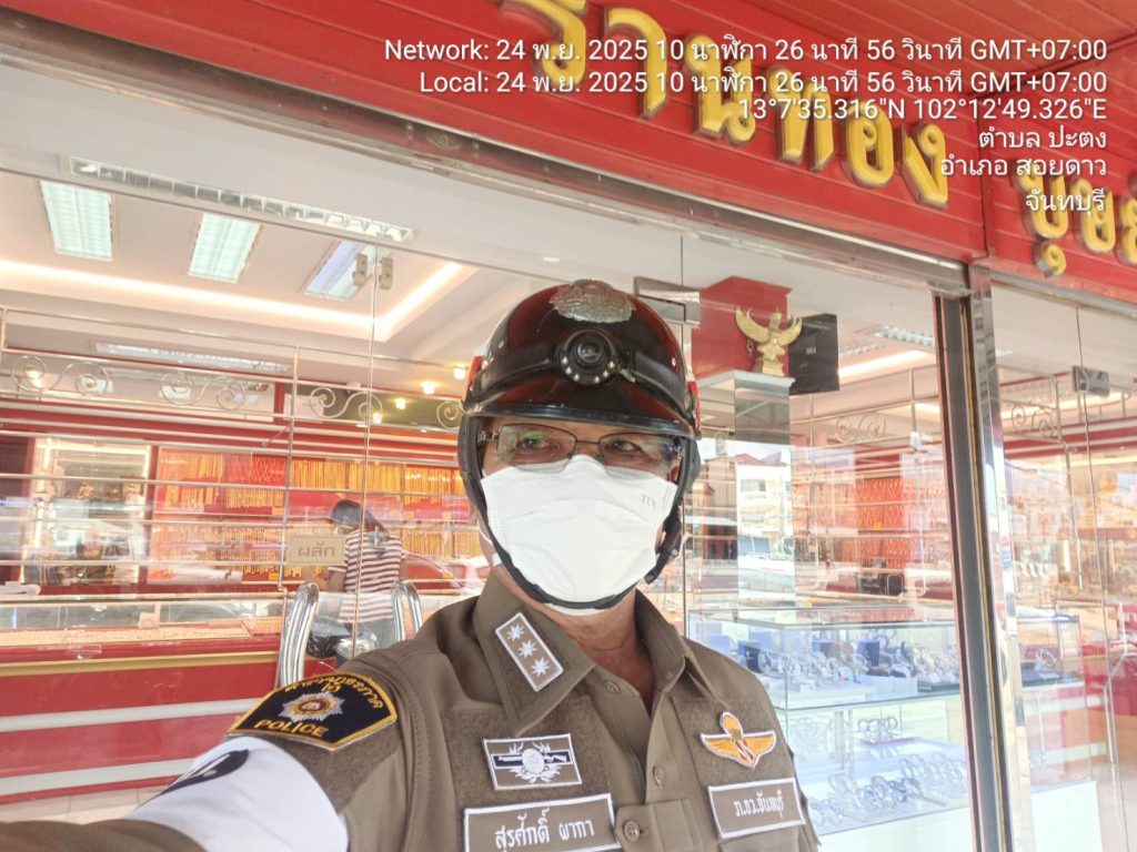 ผลการปฏิบัติสายงานจราจร เดือน พ.ย.68 24/11/2568 โดย admin / งานจราจร,งาน จร.เดือน พ.ย.68 วันนี้ (๒๔ พ.ย.๖๘ ) เวลา ๑๐.๒๐ น.ว่าที่ ร.ต.อ.สุรศักดิ์ ผากา รอง สว.(ป.) สภ.สอยดาว ออกตรวจตรวจการจราจรและร้านทองในเขตพื้นที่รับผิดชอบ การจราจรคล่องตัว เหตุการณ์ทั่วไปปกติ