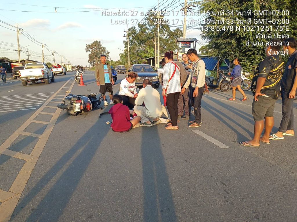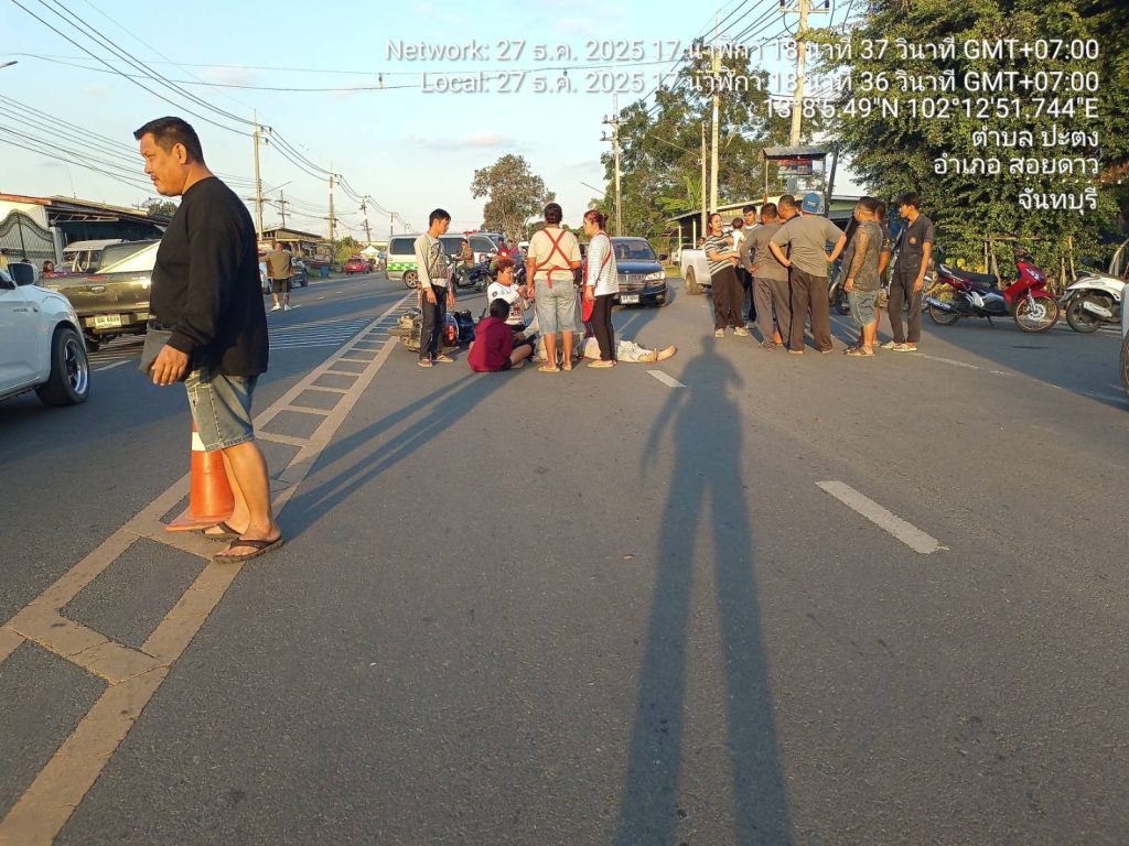 ผลการปฏิบัติสายงานจราจร เดือน ธ.ค.68 27/12/2568 โดย admin / งานจราจร,งาน จร.เดือน ธ.ค.68 วันนี้(๒๗ ธ.ค.๖๘) เวลา ๑๗.๒๔ น.ว่าที่ ร.ต.อ.สุรศักดิ์ ผากา รอง สว.(ป.) สภ.สอยดาว ว.๔ เหตุ ว.๔๐ ระหว่างรถยนต์กับรถจักรยานยนต์ บริเวณหน้าร้านหมูกะทะ เชิญ เชิญ เชิญ กู้ภัยนำผู้บาดเจ็บส่งโรงพยาบาล