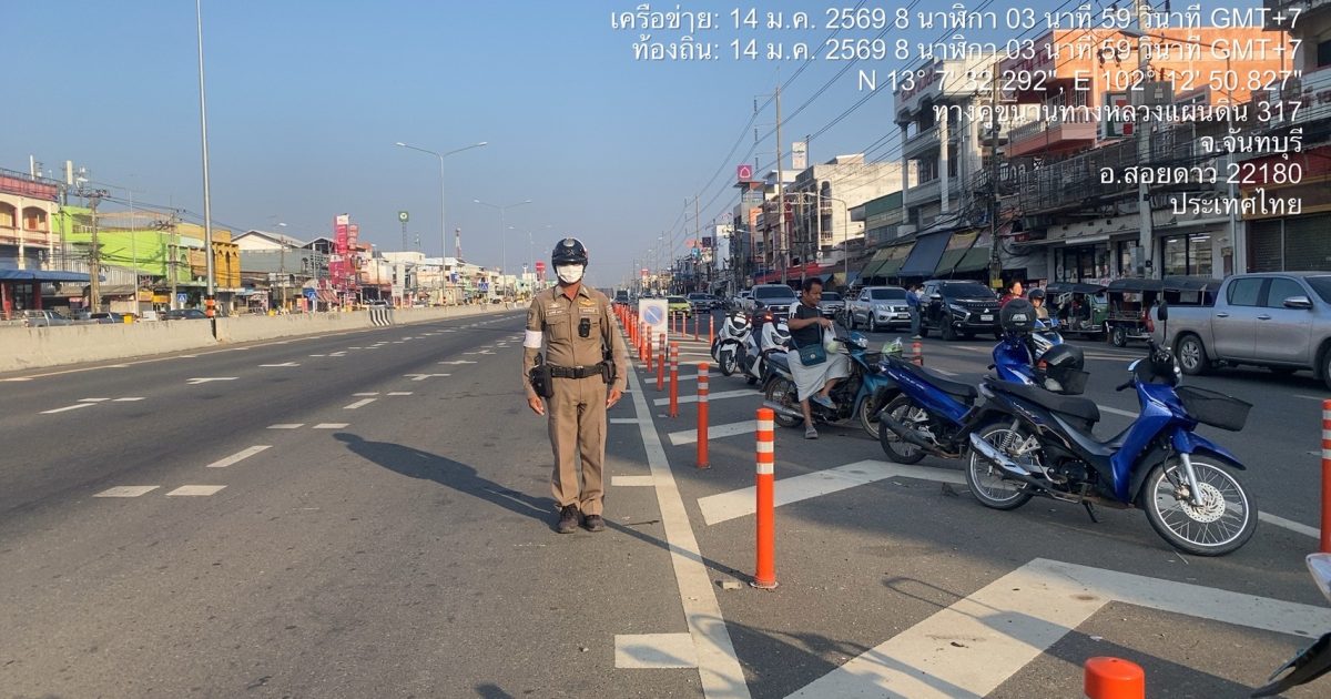 ผลการปฏิบัติสายงานจราจร เดือน ม.ค.69 14/01/2569 โดย admin / งานจราจร,งาน จร.เดือน ม.ค.69 วันนี้ (๑๔ ม.ค.๖๙)เวลา ๐๘.๐๐ น.ภายใต้การอำนวยการของ🟡 พ.ต.อ.เกริกฤทธิ์ สายวรรณะ ผกก.สภ.สอยดาว🟡 พ.ต.ท.ก้องเกียรติ เฟื้องทอง รอง ผกก.ป.สภ.สอยดาว🟡 พ.ต.ท.ประเทือง เยาวพันธ์ สวป.สภ.สอยดาวควบคุมการปฏิบัติโดย สั่งการให้ ร.ต.อ.วิรัตน์ เกตุสุวรรณ์ รอง สวป.สภ.สอยดาว ปฏิบัติหน้าที่ร้อยเวร ๖๐ พร้อมกำลังจราจร ว.๔ อำนวยความสะดวกการจราจรบริเวณถนน ๓๑๗ จันทบุรี-สระแก้ว การจราจรคล่องตัว เหตุการณ์ทั่วไปปกติ