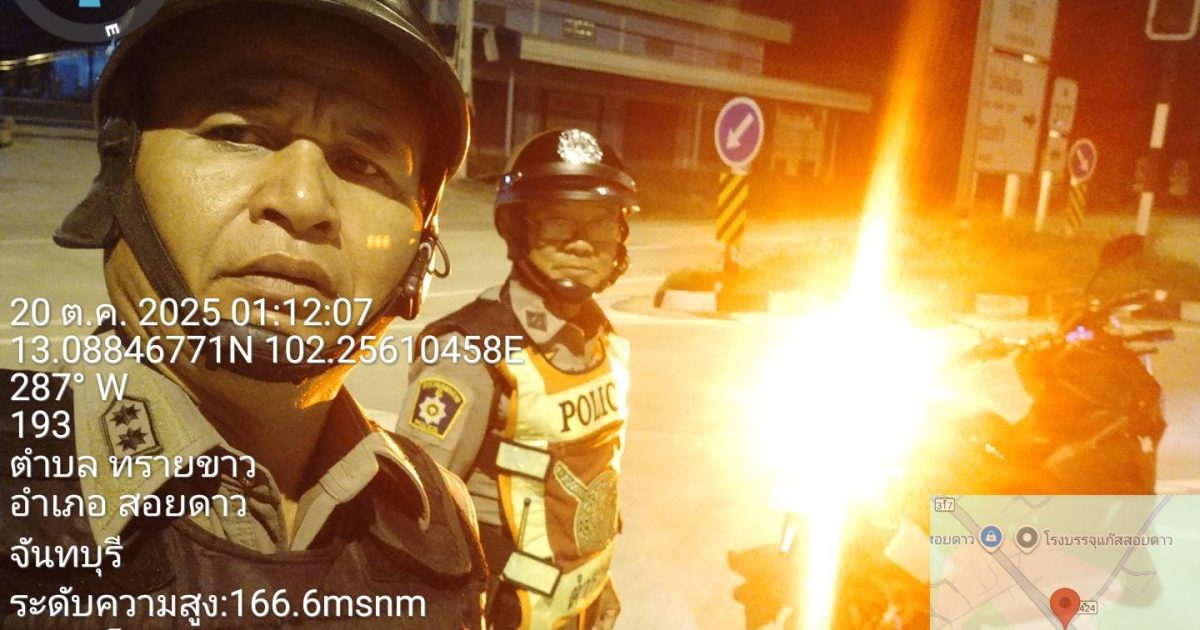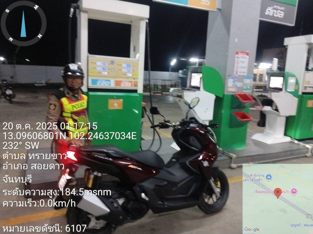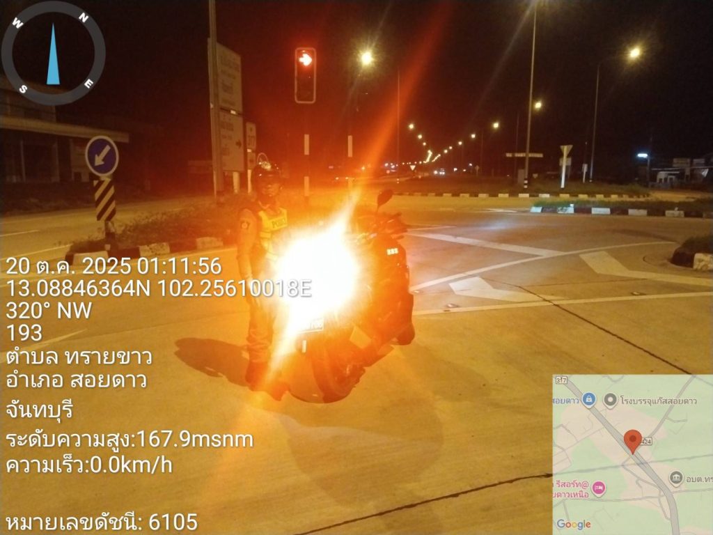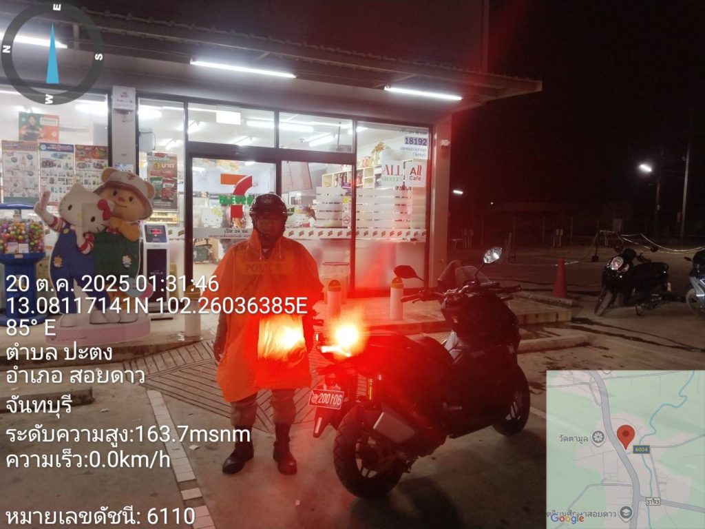 ผลการปฏิบัติสายงานป้องกันปราบปราม เดือน ต.ค.68 20/10/2568 โดย admin / งานป้องกันปราบปราม,งาน ป.เดือน ต.ค.68 วันนี้(๒๐ ต.ค.๖๘) เวลา ๐๑.๑๒ น.ร.ต.ท.ประเสริฐราชประโคน รอง.สว(ป.) สภ.สอยดาว พร้อม อส.ตร.สนทยา เงินยอดรัก ว.๔ ป้องกันเหตุ เกี่ยวกับทรัพย์/แช่งรถในทางแยกบ้านใหม่ ปั๊ม PTเซเว่นตามูน เหตุการณ์ปกติ