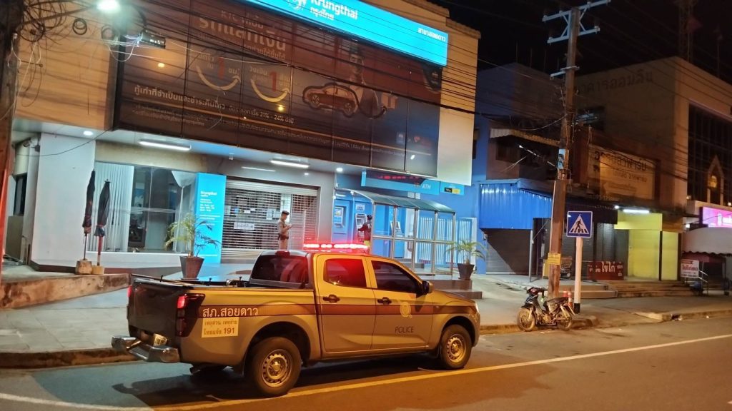 ผลการปฏิบัติสายงานป้องกันปราบปราม เดือน ต.ค.68 22/10/2568 โดย admin / งานป้องกันปราบปราม,งาน ป.เดือน ต.ค.68 วันนี้(๒๒ ต.ค.๖๘) เวลา ๐๐.๓๐ น.ร.ต.ท.สมพิศ โชคเจริญวุฒิกุล รอง สว.(ป) สภ.สอยดาว ปฏิบัติหน้าที่เวร ๒๐,ด.ต.ประดิษฐ์ พลยางนอก ผบ.หมู่(ป) สภ.สอยดาว สายตรวจรถยนต์ ออก ว.๔ ตรวจจุดเสี่ยงจุดล่อแหลม ป้องกันเหตุ ธนาคาร ตู้กดเงินสดในเขตพื้นที่รับผิดชอบ เหตุการณ์ทั่วไปปกติ