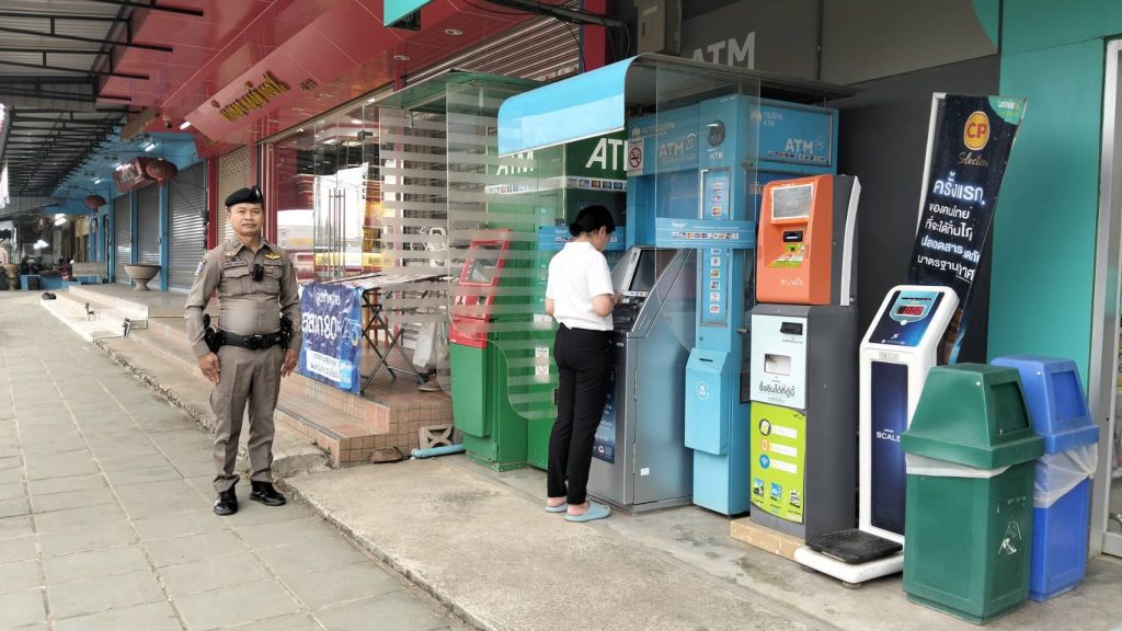 ผลการปฏิบัติสายงานป้องกันปราบปราม เดือน ต.ค.68 27/10/2568 โดย admin / งานป้องกันปราบปราม,งาน ป.เดือน ต.ค.68 วันนี้(๒๗ ต.ค.๖๘) เวลา ๐๙.๕๕ น.ร.ต.ท.สมพิศ โชคเจริญวุฒิกุล รอง สว.(ป) สภ.สอยดาว,ด.ต.ประดิษฐ์ พลยางนอก ผบ.หมู่(ป) สภ.สอยดาว ปฏิบัติหน้าที่ ๒๐.สายตรวจรถยนต์ ออก ว.๔ ตรวจจุดเสี่ยง จุดล่อแหลมป้องกันเหตุห้างทอง ธนาคาร ตู้กดเงินสด ในเขตพื้นที่รับผิดชอบ เหตุการณ์ทั่วไปปกติ