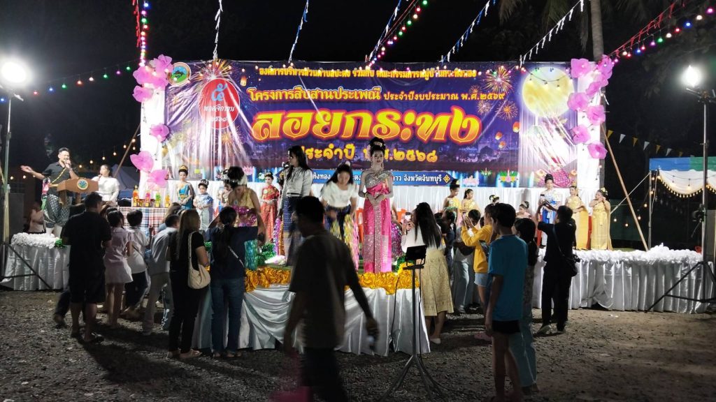 ผลการปฏิบัติสายงานป้องกันปราบปราม เดือน พ.ย.68 06/11/2568 โดย admin / ไม่มีหมวดหมู่,ข่าวกิจกรรม,งานป้องกันปราบปราม,งาน ป.เดือน พ.ย.68 วันนี้ ๕ พ.ย.๖๘ เวลา ๑๘.๓๐ น. ว่าที่ ร.ต.อ.สมพิศ โชคเจริญวุฒิกุล รอง สว.(ป.)สภ.สอยดาว ปฏิบัติหน้าที่ร้อยเวร ๒๐ และ ด.ต.ประดิษฐ์ พลยางนอก ผบ.หมู่(ป.) สภ.สอยดาว ปฏิบัติสายตรวจรถยนต์ ร่วมงาน”งานโครงการสืบสานประเพณีลอยกระทง” ณวัดกระทิงทอง ตำบล ปะตง อำเภอสอยดาว จังหวัดจันทบุรี