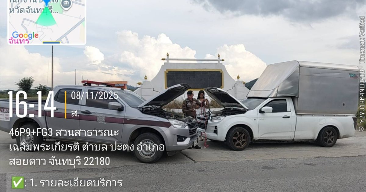ผลการปฏิบัติสายงานป้องกันปราบปราม เดือน พ.ย.68 08/11/2568 โดย admin / ข่าวประชาสัมพันธ์,งานป้องกันปราบปราม,งาน ป.เดือน พ.ย.68 วันที่ ๘ พ.ย.๖๘ เวลา ๑๖.๐๐ น.สายตรวจรถยนต์ ให้การช่วยเหลือรถยนต์แบตเตอร์รี่หมด บริเวณทางเข้าสนามฟุตบอลอำเภอสอยดาว ให้การช่วยเหลือโดยการพ่วงแบตเตอร์รี่ รถยนต์สามารถเดินทางต่อไปได้