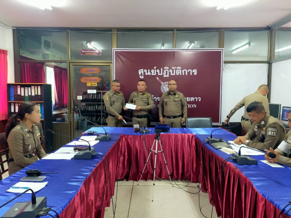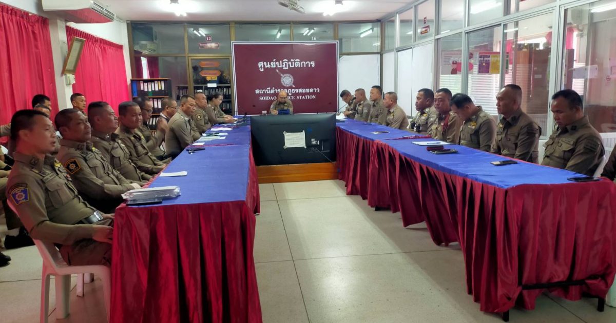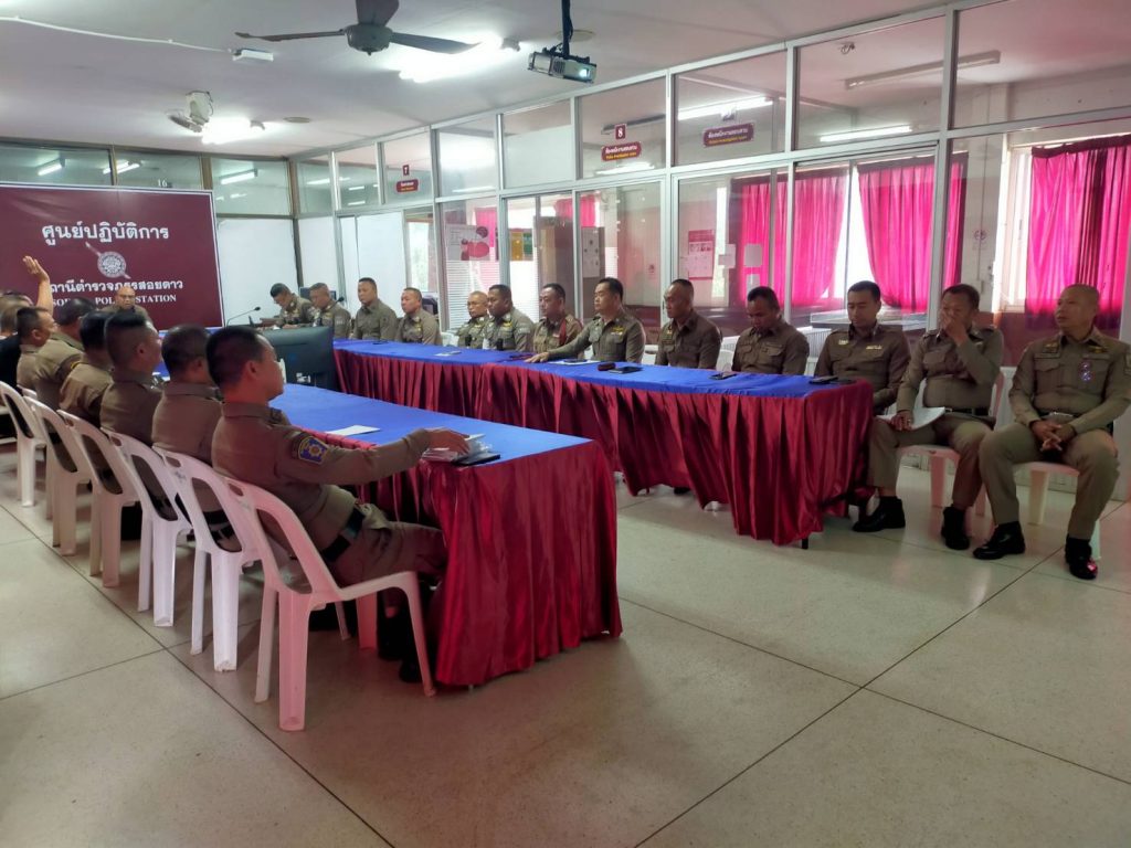 ผลการปฏิบัติสายงานป้องกันปราบปราม เดือน พ.ย.68 19/11/2568 โดย admin / งานจราจร,งาน จร.เดือน พ.ย.68,งานป้องกันปราบปราม,งาน ป.เดือน พ.ย.68,งานอำนวยการ,งาน อก.เดือน พ.ย.68 วันนี้(๑๙ พ.ย.๖๘) เวลา ๑๐.๐๐ น.พ.ต.ท.ก้องเกียรติ เฟื้องทอง รอง ผกก.ป.สภ.สอยดาว เรียกประชุมข้าราชการตำรวจสอยดาส สายงานป้องกันปราบปราม สายงานจราจรและสายงานอำนวยการ เพื่อชี้แจงข้อราชการ พร้อมทั้งมอบรางวัลให้กับสายตรวจที่มีผลการปฏิบัติดีเยี่ยม