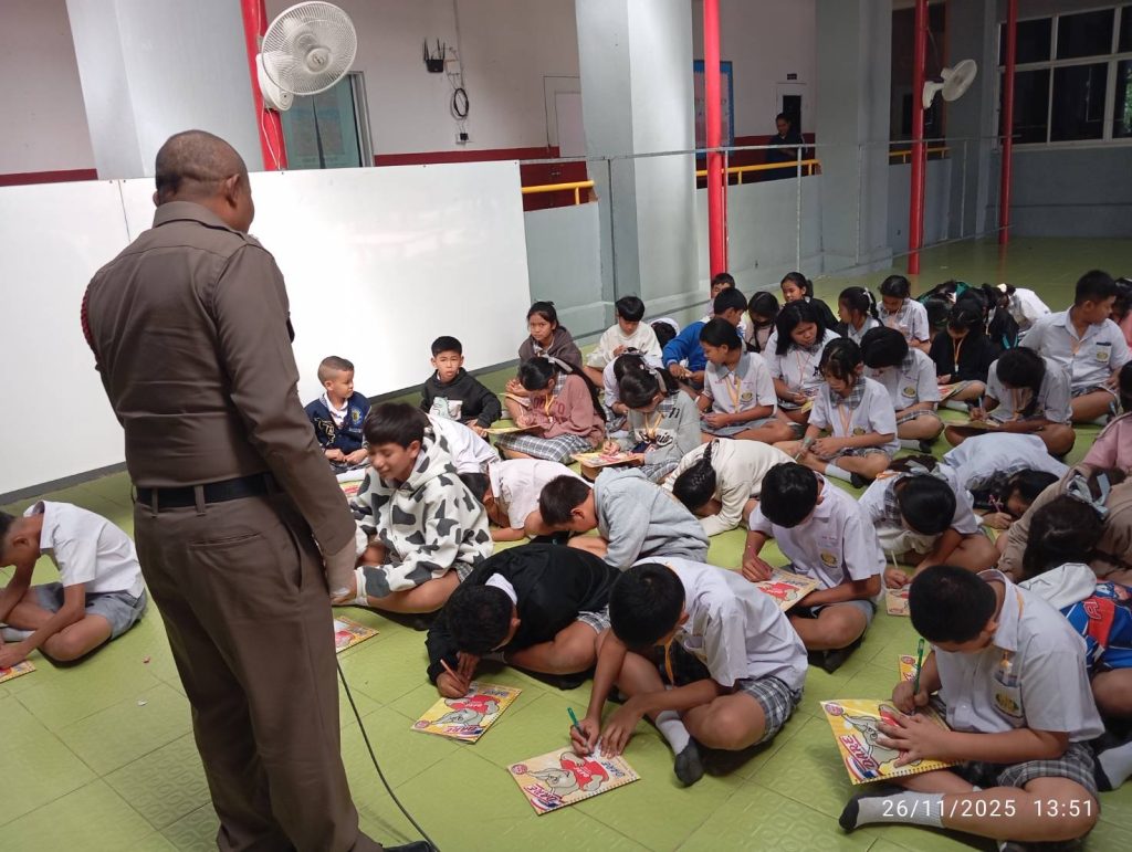 ผลการปฏิบัติสายงานป้องกันปราบปราม เดือน พ.ย.68 26/11/2568 โดย admin / ไม่มีหมวดหมู่,ข่าวกิจกรรม,งานป้องกันปราบปราม,งาน ป.เดือน พ.ย.68 วันนี้(๒๖ พ.ย.๖๘) เวลา ๑๓.๐๐-๑๕.๐๐ น.ด.ต.สมพร จันเจ้า ผบ.หมู่(ป.) สภ.สอยดาว ครูตำรวจแดร์ ได้เข้าทำการสอนนักเรียนในโรงเรียนเตรียมศึกษาสอยดาว เรื่องเกี่ยวกับยาเสพติด และบุหรี่ไฟฟ้า บทที่สรุป.บทที่ ๑ โครงการแดร์ ” D.A.R.E. “บทที่ ๒ บุหรี่กับนักเรียน โครงการ D.A.R.E. ,ของสำนักงานตำรวจแห่งชาติ โครงการสถานศึกษาสีขาวปลอดยาเสพติดและอบายมุขต่างๆ