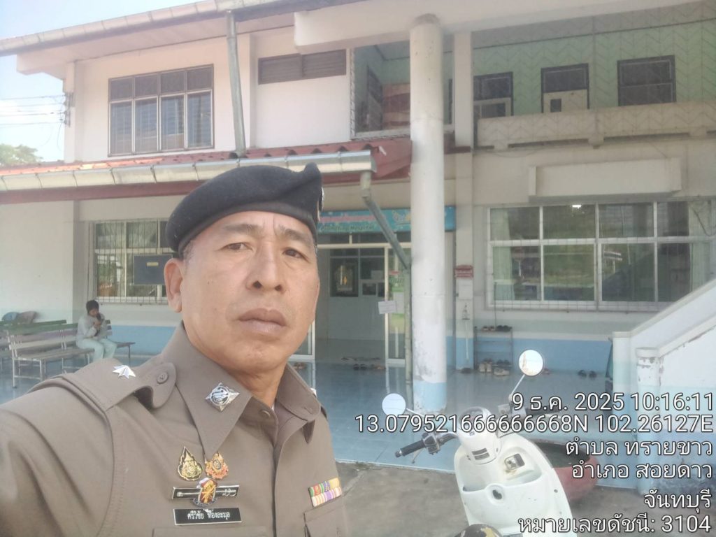 ผลการปฏิบัติสายงานป้องกันปราบปราม เดือน ธ.ค.68 09/12/2568 โดย admin / งานป้องกันปราบปราม,งาน ป.เดือน ธ.ค.68 วันนี้(๙ ธ.ค.๖๘) เวลา ๑๐.๐๐ น.ร.ต.ท.ศรีวิชัย ทองละมุล รอง สว.(ป.) สภ.สอยดาว ออกตรวจตราความปลอดภัยโรงพยาบาลส่งเสริมสุขภาพ ม.๑ ต.ทรายขาว อ.สอยดาว จว.จันทบุรีเหตุการณ์ทั่วไปปกติ