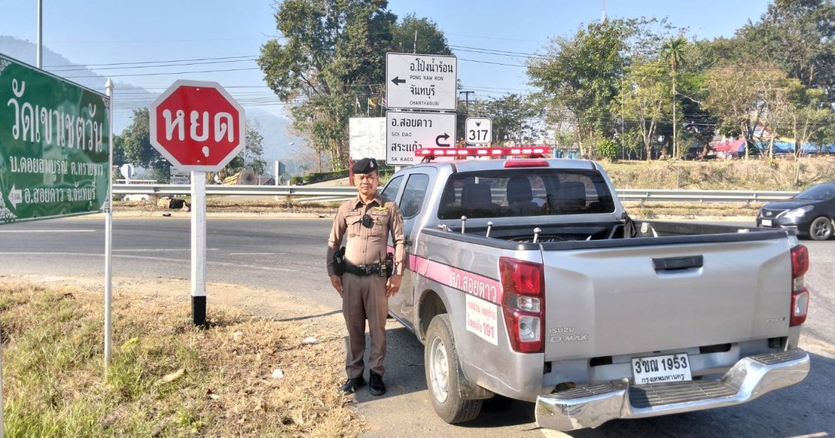 ผลการปฏิบัติสายงานป้องกันปราบปราม เดือน ม.ค.69 01/01/2569 โดย admin / งานป้องกันปราบปราม,งาน ป.เดือน ม.ค.69 วันนี้(๑ ม.ค.๖๙) เวลา ๐๙.๑๙ น.ร.ต.อ.สมพิศ โชคเจริญวุฒิกุล ปฏิบัติหน้าที่ดาว ๒๐,ด.ต.ประดิษฐ์ พลยางนอก ปฏิบัติหน้าที่สายตรวจรถยนต์ ออกตรวจสอบเหตุมีประชาชนนอนอยู่บริเวณเกาะกลางถนน สาย ๓๑๗ จันทบุรี -สระแก้ว หน้าวัดทรายขาว ทางเข้าน้ำตกเขาสอยดาว ตรวจสอบแล้วไม่ได้เกิดจากอุบัติเหตุแต่อย่างใด ให้การช่วยเหลือนำส่งบ้านพักต่อไป