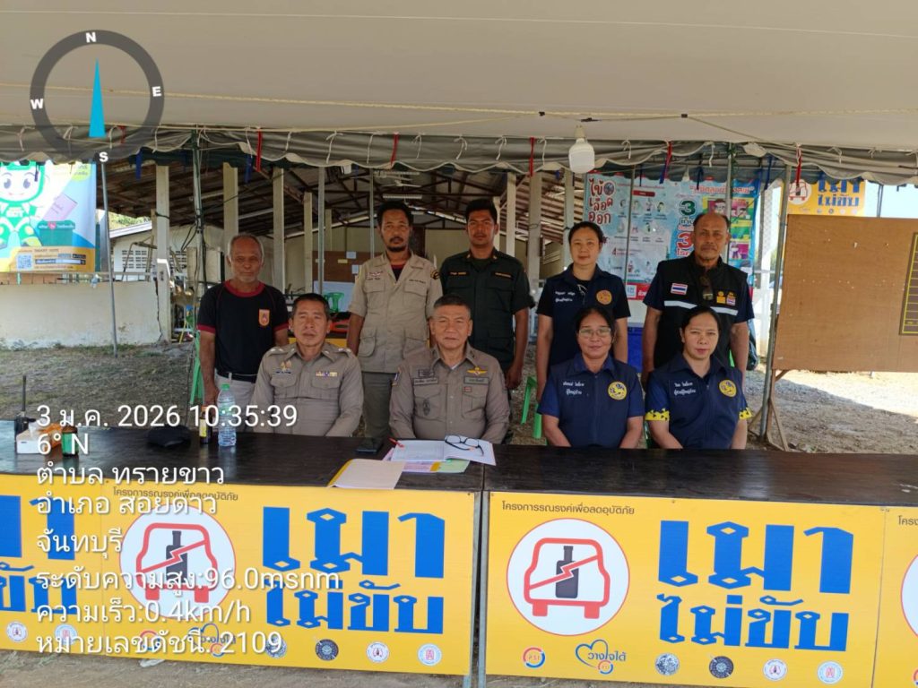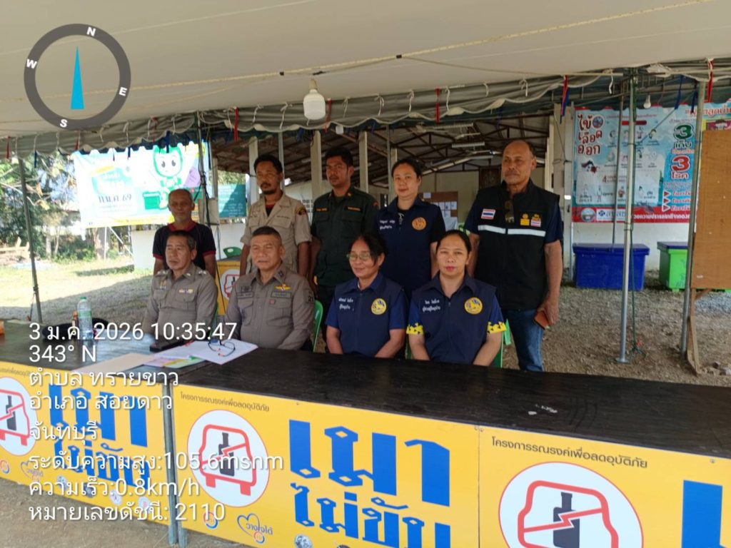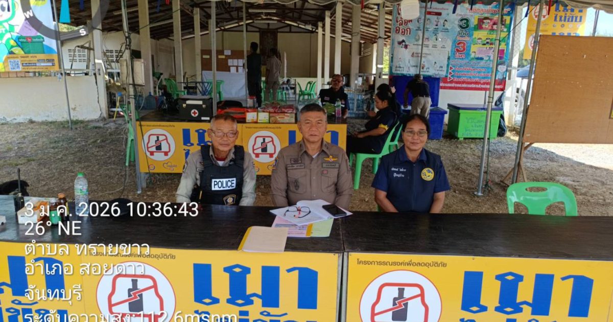 ผลการปฏิบัติสายงานป้องกันปราบปราม เดือน ม.ค.69 03/01/2569 โดย admin / งานป้องกันปราบปราม,งาน ป.เดือน ม.ค.69 วันนี้(๓ ม.ค.๖๙) เวลา ๑๐.๔๕ น.พ.ต.ท.ประเทือง เยาวพันธ์ สวป.สภ.สอยดาว ตรวจเยี่ยมจุดบริการประชาชน จุดตรวจบริการประชาชนบ้าน สำโรง ม.๒ ต.ทรายขาว พบ เจ้าหน้าที่ตำรวจฝ่ายปกครอง,ชรบ.,อส.ตร.,อปพร. อยู่ปฎิบัติหน้าที่ รายงานเหตุการณ์ปกติ