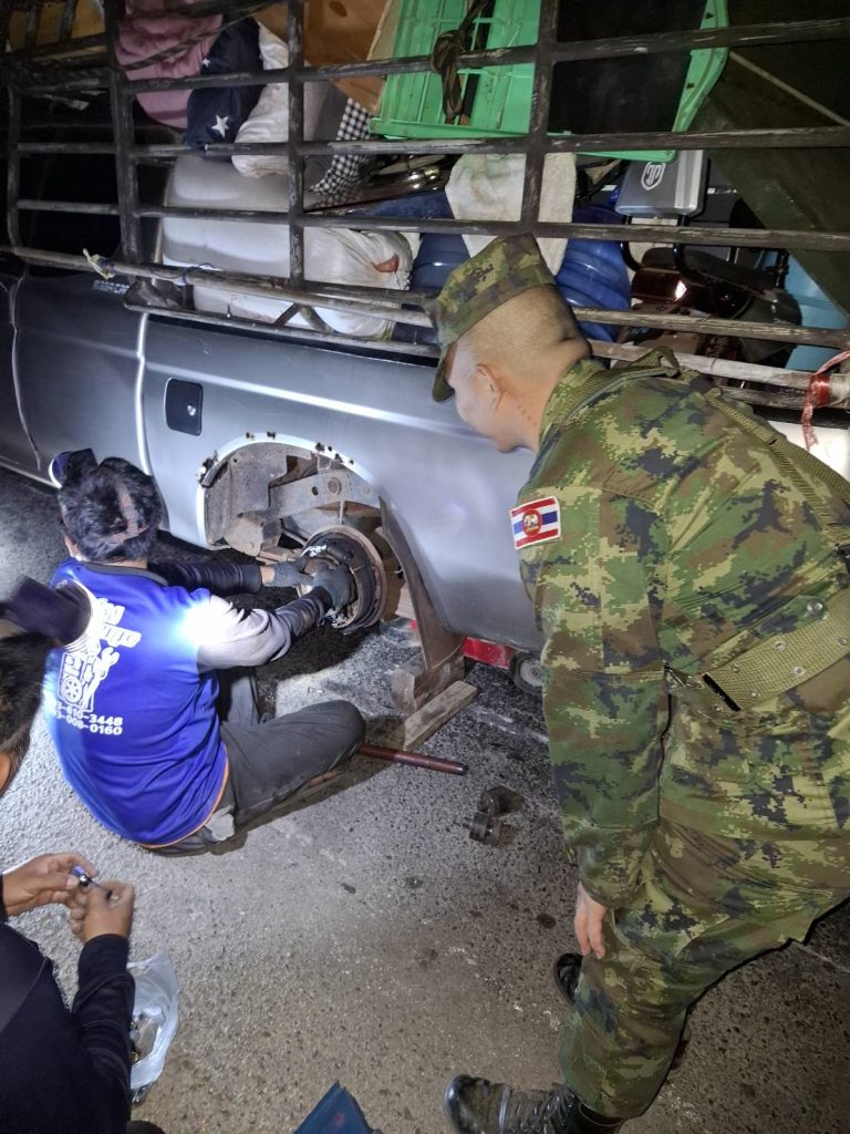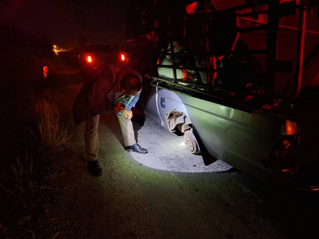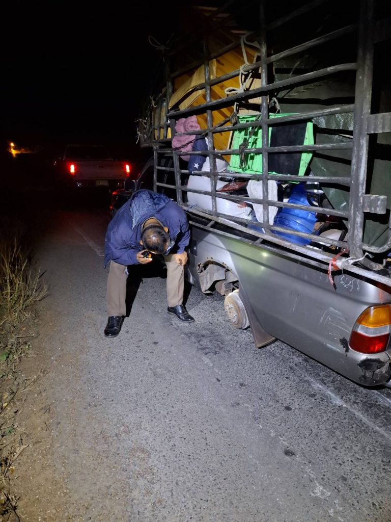 ผลการปฏิบัติสายงานป้องกันปราบปราม เดือน ม.ค.69 05/01/2569 โดย admin / งานป้องกันปราบปราม,งาน ป.เดือน ม.ค.69 วันนี้(๕ ม.ค.๖๙) เวลา ๐๑.๕๐ น.เหตุขอความช่วยเหลือ รถยนต์ล้อหลุดบริเวณบ้านเขาแดง ถนน ๓๑๗ จันทบุรี-สระแก้ว สายตรวจเขาแหลมโดย ด.ต.วีระ คำคนซื้อ พร้อมเจ้าหน้าที่ทหารประจำด่านตรวจ ออก ว.๔ ตรวจสอบ จากการตรวจสอบ เจ้าของรถแจ้งว่าจะเดินทางไปจังหวัดตราด แต่ล้อได้เกิดหลุด หาล้อเจอแล้ว เเต่ไม่สามารถแก้ไขได้ เนื่องจากน๊อตขาดทั้งหมด ไม่มีอะไหล่ จึงได้นำกรวยเเละกระบองไฟ มาทำเป็นสัญญานไฟไว้เพื่อป้องกันอุบัติเหตุซ้ำซ้อน พร้อมทั้งได้ติดตามช่างมาดำเนินการแก้ไขให้ สามารถเดินทางต่อไปได้