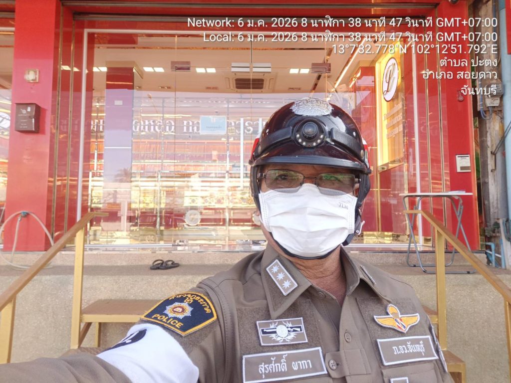 ผลการปฏิบัติสายงานจราจร เดือน ม.ค.69 06/01/2569 โดย admin / งานจราจร,งาน จร.เดือน ม.ค.69 วันนี้(๖ ม.ค.๖๙) เวลา ๐๘.๓๕ น.ภายใต้การอำนวยการของ🟡 พ.ต.อ.เกริกฤทธิ์ สายวรรณะ ผกก.สภ.สอยดาว🟡 พ.ต.ท.ก้องเกียรติ เฟื้องทอง รอง ผกก.ป.สภ.สอยดาว🟡 พ.ต.ท.ประเทือง เยาวพันธ์ สวป.สภ.สอยดาวควบคุมการปฏิบัติโดยสั่งการให้ ร.ต.อ.วิรัตน์ เกตุสุวรรณ์ รอง สวป.สภ.สอยดาว ปฏิบัติหน้าที่ร้อยเวร ๖๐ พร้อม ว่าที่ร.ต.อ.สุรศักดิ์ ผากา รอง สว.(ป.) สภ.สอยดาว ว.๔ ตรวจการจราจร, ธนาคาร ในเขตรับผิดชอบ การจราจรคล่องตัว เหตุการณ์ทั่วไปปกติ