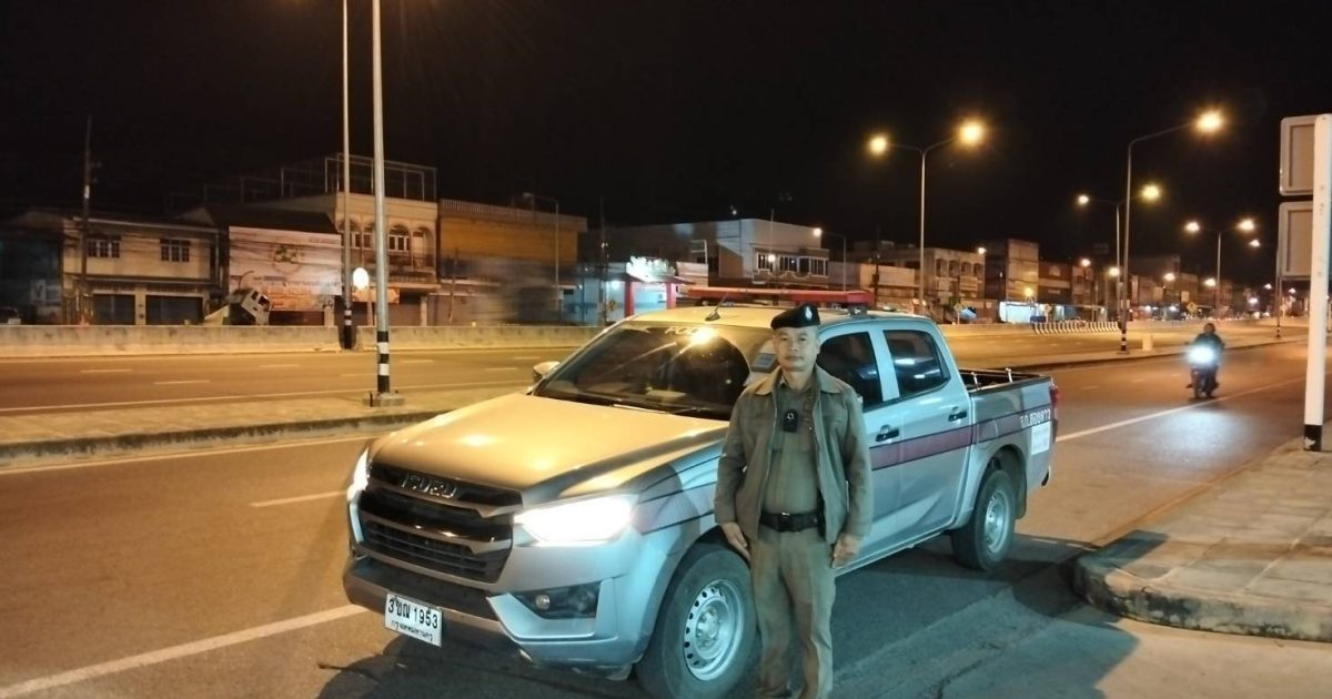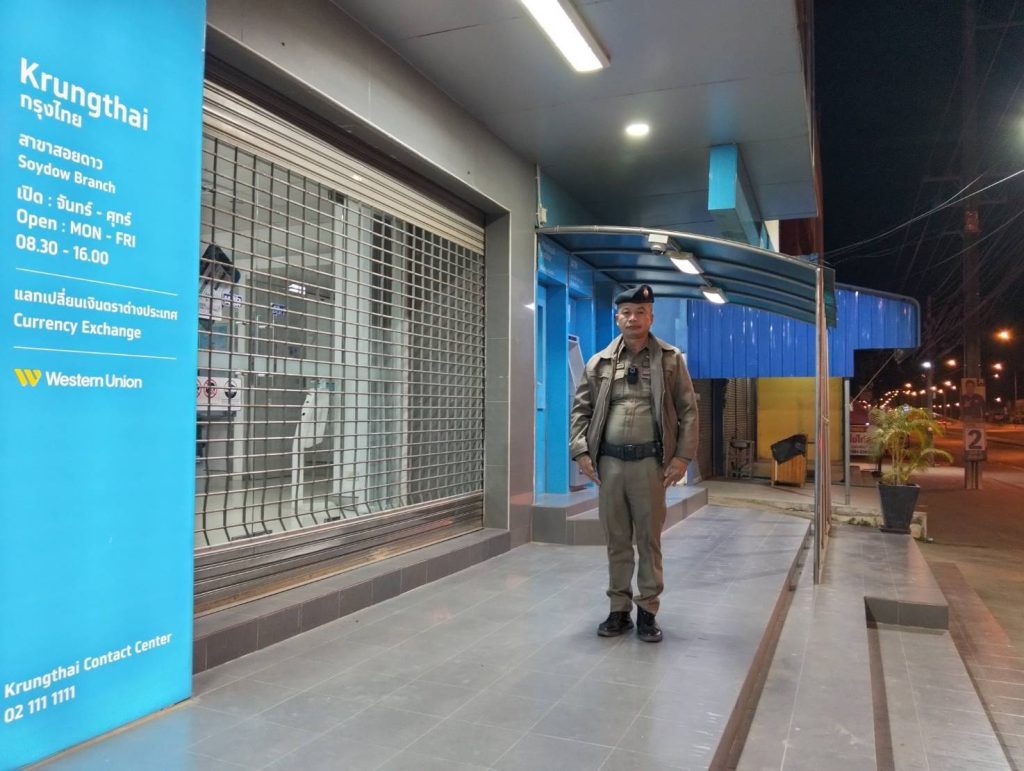 ด.ต.ประดิษฐ์ พลยางนอก ผบ.หมู่(ป.) สภ.สอยดาว ปฏิบัติหน้าที่สายตรวจรถยนต์ ตรวจจุดเสี่ยงป้องกันเหตุ ธนาคาร ตู้กดเงินสดตลาดปะตง เหตุการณ์ทั่วไปปกติ
