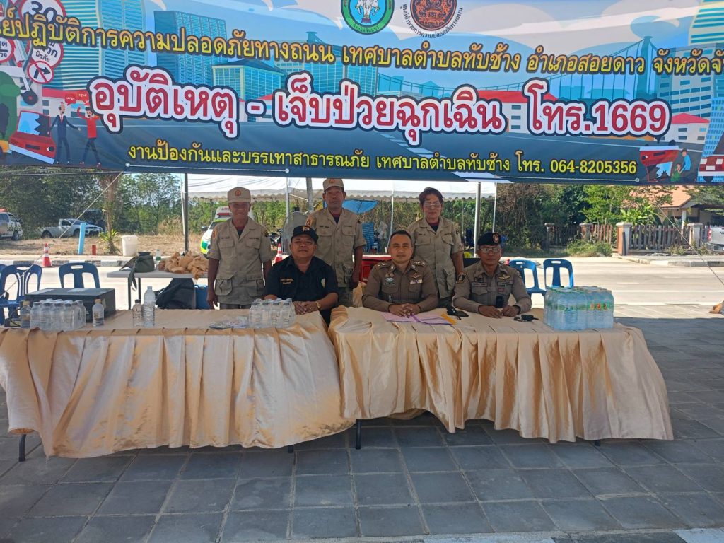 ผลการปฏิบัติสายงานสอบสวน เดือน ธ.ค.68 31/12/2568 โดย admin / งานสอบสวน,งานสอบสวน เดือน ธ.ค.68 วันนี้ (๓๑ ธ.ค.๖๘) เวลา ๑๔.๐๐ น.) พ.ต.ท.อภิชาติ นิยมชาติ สว.สอบสวน(หน.งานคดี) สภ.สอยดาว ได้มาตรวจเยี่ยมจุดบริการประชาชนถนน ๓๑๗ จันทบุรี-สระแก้ว ในช่วงเทศกาลปีใหม่ ๒๕๖๙ บริเวณหน้าตู้ยามบ้านทับช้างต.ทับช้าง อ.สอยดาว จว.จันทบุรี เหตุการณ์ทั่วไปปกติ