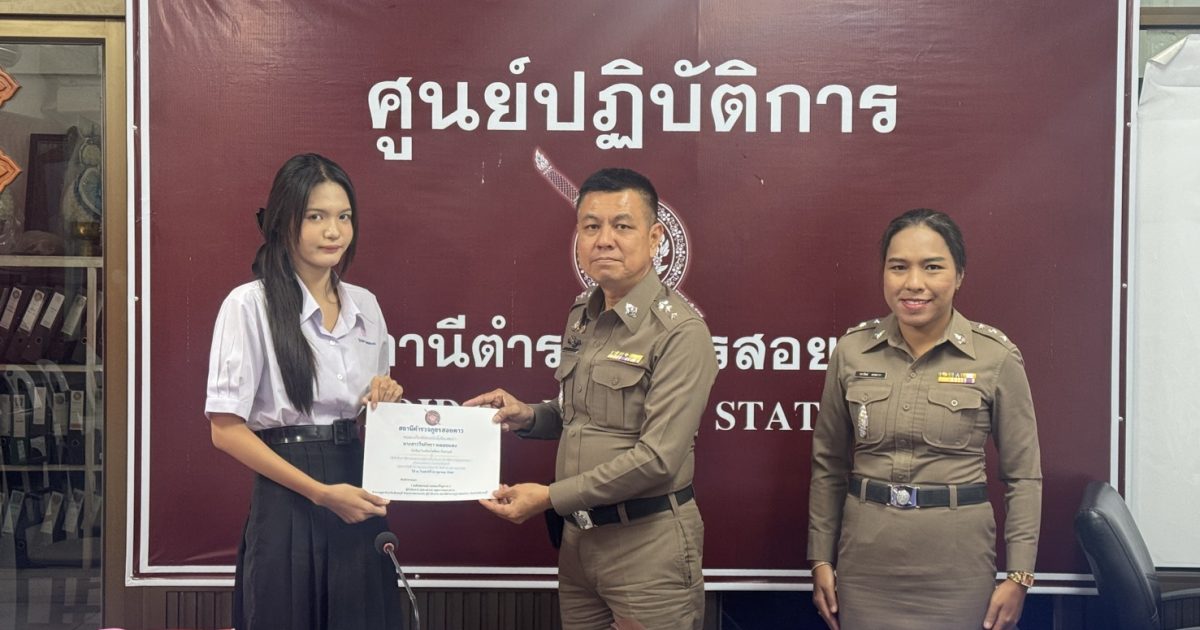 พ.ต.อ.นพันษกรณ์ กรณ์เจริญการ ผกก.(สอบสวน) รรท.ผกก.สภ.สอยดาว มอบเกียรติบัตรให้กับนักเรียน 10/10/2568 โดย admin / ข่าวภารกิจผู้บังคับบัญชา,งานอำนวยการ,งาน อก.เดือน ต.ค.68 วันนี้(๑๐ ต.ค.๖๘) เวลา ๑๐.๐๐ น.พ.ต.อ.นพันษกรณ์ กรณ์เจริญการ ผกก.(สอบสวน) รรท.ผกก.สภ.สอยดาว มอบเกียรติบัตรให้แก่นางสาว วีรภัทรา พลอยแดง นักเรียนโรงเรียนโพธิ์ทอง จินดามณี ในโอกาศที่ได้เข้ารับการฝึกประสบการณ์การทำงาน ณ สถานีตำรวจภูธรสอยดาว ระหว่างวันที่ ๒๙ กันยายน ๒๕๖๘ ถึง วันที่ ๑๐ ตุลาคม ๒๕๖๘