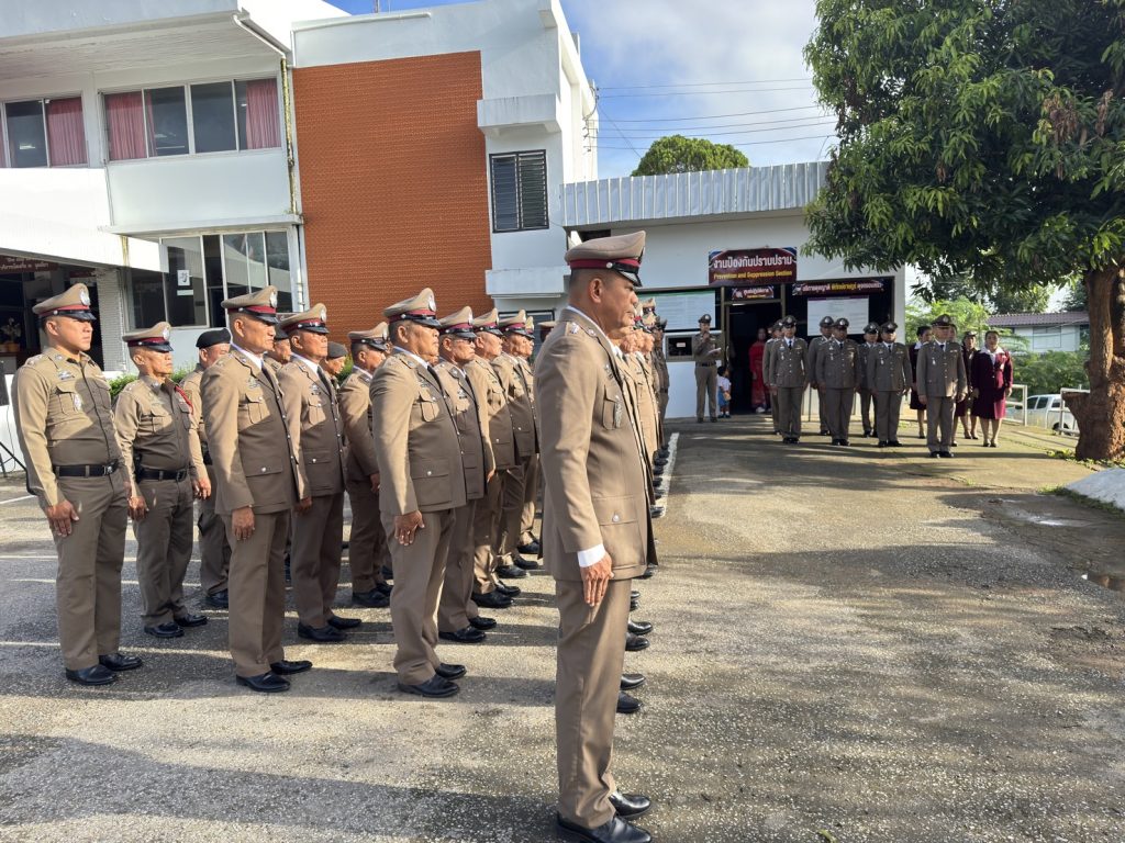 เวลา ๐๘.๐๐ น.เข้าแถวเคารพธงชาติ สวกมนต์ไหว้พระ กล่าวคำปฏิญาณ อุดมคติตำรวจ