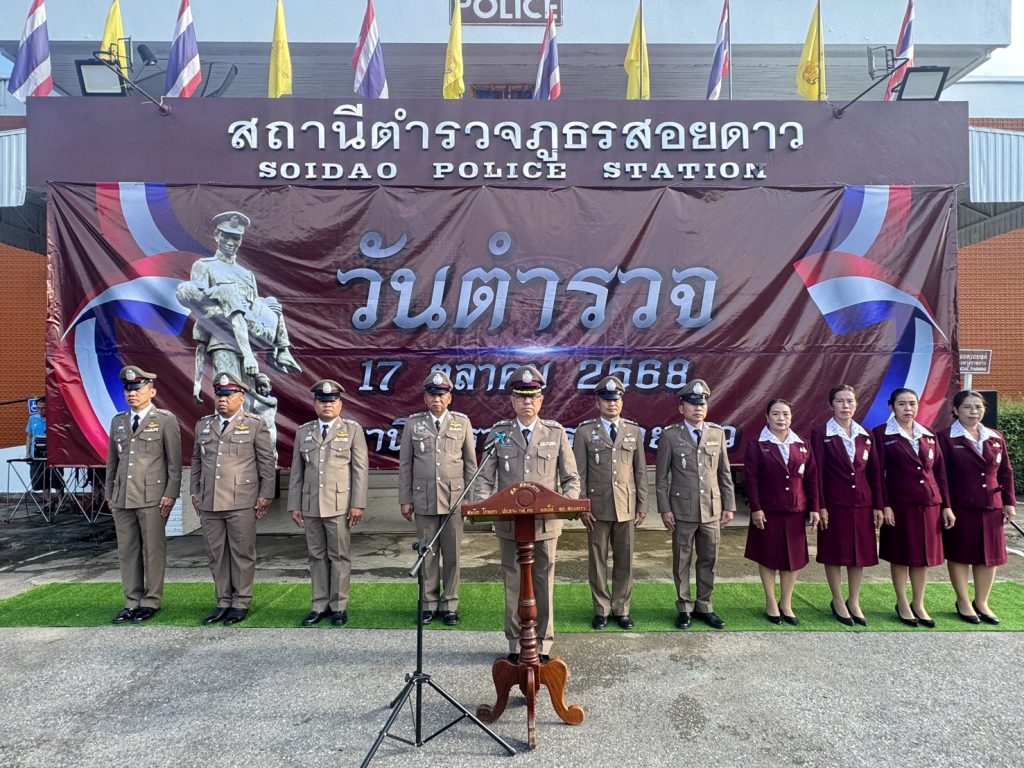 วันนี้(๑๗ ต.ค.๖๘) พ.ต.อ.นพันษกรณ์ กรณ์เจริญการ ผกก.(สอบสวน) กลุ่มงานสอบสวน ภ.จว.จันทบุรี รรท.ผกก.สภ.สอยดาว,กต.ตร.สภ.สอยดาว พร้อมข้าราชการตำรวจและครอบครัว ร่วมจัดงานพิธีวันคล้ายวันสถาปนาสำนักงานตำรวจแห่งชาติ ประจำปี พ.ศ.๒๕๖๘ ณ สภ.สอยดาว