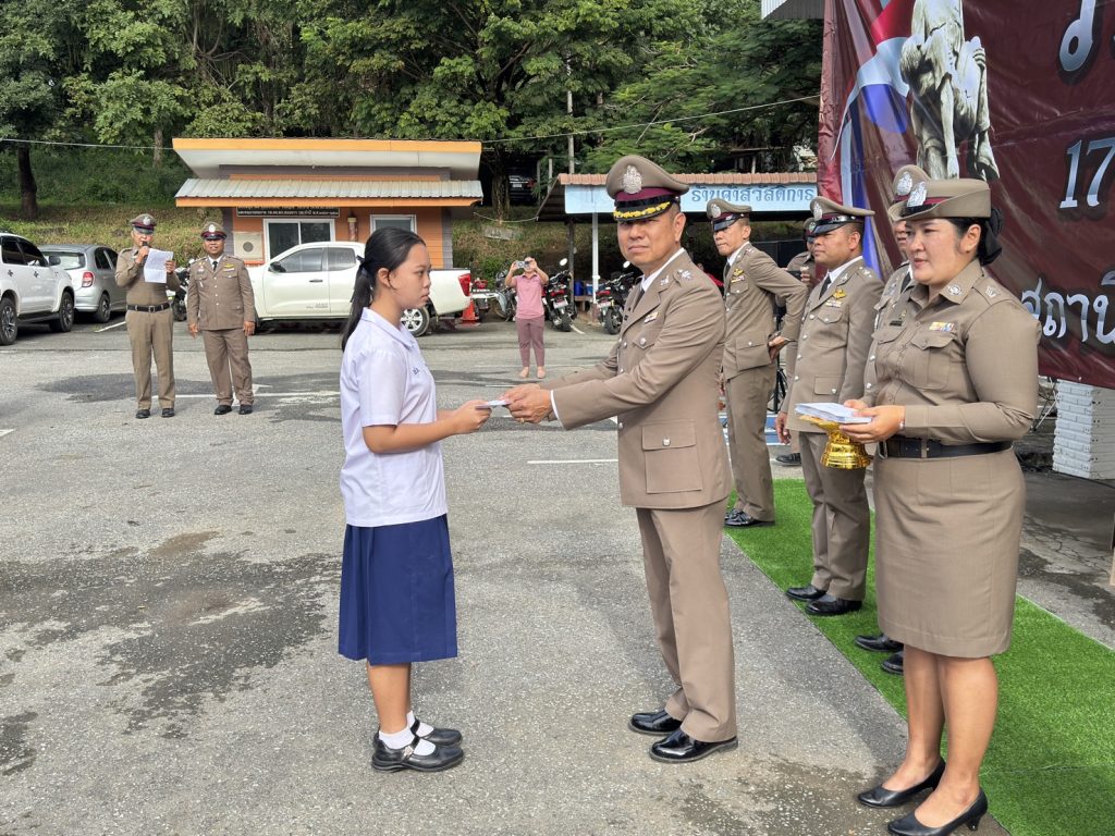 เวลา ๐๘.๒๐ น.อ่านสาร ผบ.ตร.,มอบทุนให้แก่บุตรข้าราชการตำรวจ