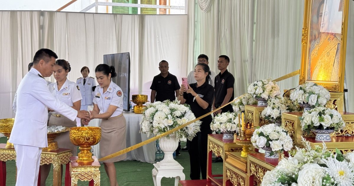 วันนี้(๒๖ ต.ค.๖๘) เวลา ๑๐.๐๐ น. พ.ต.อ.นพันษกรณ์ กรณ์เจริญการ ผกก.(สอบสวน) กลุ่มงานสอบสวน ภ.จว.จันทบุรี รักษาราชการแทน ผกก.สภ.สอยดาว เข้าร่วมพิธีถวายน้ำสรงพระบรมศพสมเด็จพระนางเจ้าสิริกิติ์ พระบรมราชินีนาถ พระบรมราชชนนีพันปีหลวง และร่วมลงนามถวายอาลัย เบื้องหน้าพระฉายาลักษณ์สมเด็จพระนางเจ้าสิริกิติ์ พระบรมราชินีนาถ พระบรมราชชนนีพันปีหลวง ณ วัดประตงวนาราม อำเภอสอยดาว จังหวัดจันทบุรี โดยมีนายมงคล เลิศพรทิพย์ นายอำเภอสอยดาว เป็นประธานในพิธี