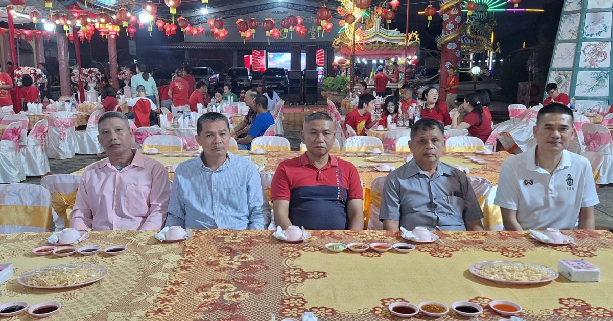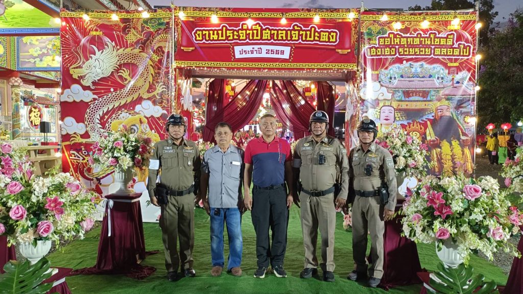 พ.ต.อ.เกริกฤทธิ์ สายวรรณะ ผกก.สภ.สอยดาว,นายสมเกียรติ์ แซ่จง ประธาน กต.ตร.สภ.สอยดาว ร่วมงานเลี้ยงประจำปีศาลเจ้าปะตง 21/03/2569 โดย admin / ไม่มีหมวดหมู่,ข่าวกิจกรรม,ข่าวภารกิจผู้บังคับบัญชา,งานอำนวยการ,งาน อก.เดือน มี.ค.69 วันที่ ๒๐ มี.ค.๖๙ เวล่ ๑๘.๐๐ น.พ.ต.อ.เกริกฤทิ์ สายวรรณะ ผกก.สภ.สอยดาว,นายสมเกียรติ แซ่จง ประธานกก.ตร.สภ.สอยดาว, พ.ต.ท.ประเทือง เยาวพันธ์ สวป.สภ.สอยดาว พ.ต.ท.เอนก เครือเขื่อนเพชร สว.อก.สภ.สอยดาว พร้อมข้าราชการตำรวจสอยดาว ร่วมงานประจำปีศาลเจ้าปะตง