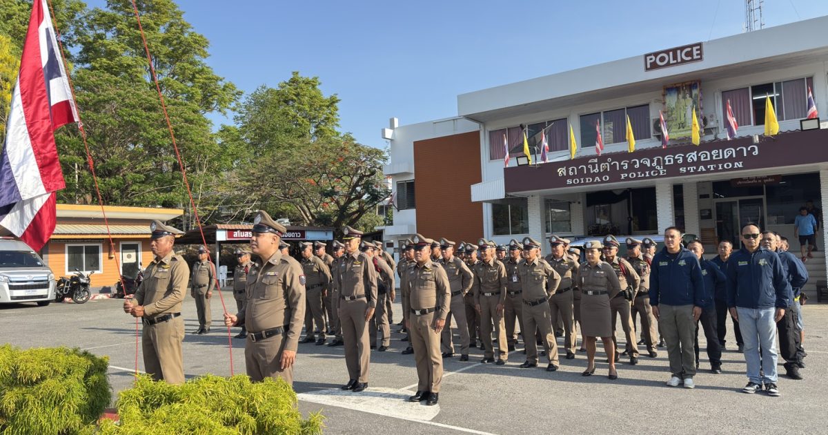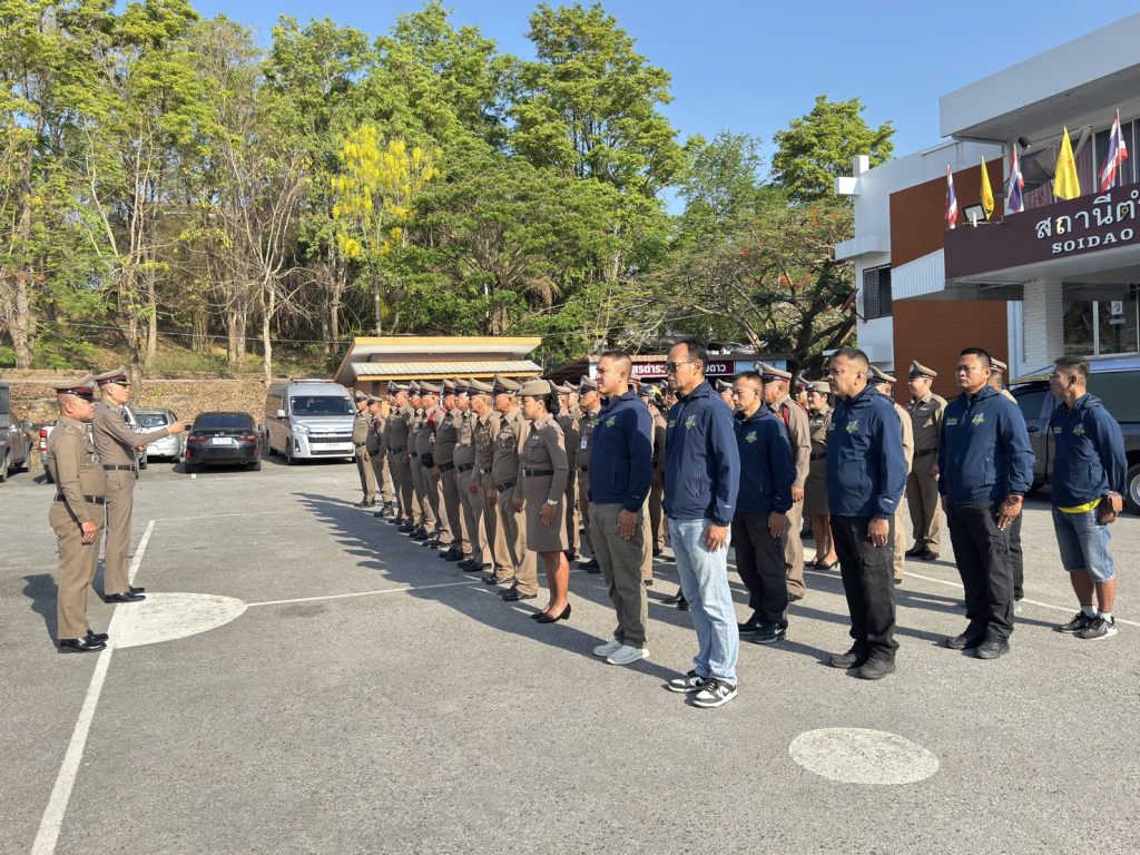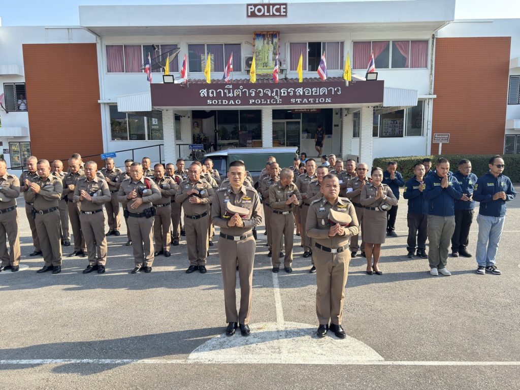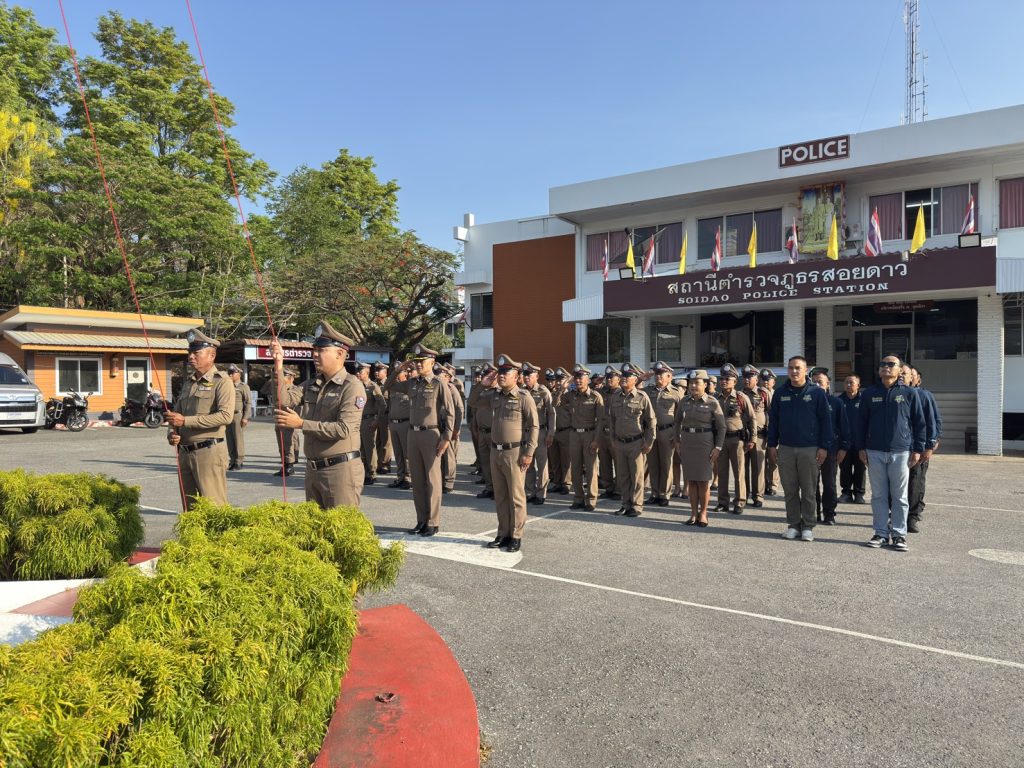 พ.ต.อ.เกริกฤทธิ์ สายวรรณะ ผกก.สภ.สอยดาว พร้อมข้าราชการตำรวจสอยดาว เข้าแถวเคาระธงชาติ ตรวจทรงผมและเครื่องแต่งกาย เพื่อเตรียมความพร้อมรอรับการตรวจราชการ 30/03/2569 โดย admin / ไม่มีหมวดหมู่,ข่าวกิจกรรม,ข่าวภารกิจผู้บังคับบัญชา,งานอำนวยการ,งาน อก.เดือน มี.ค.69 วันนี้(๓๐ มี.ค.๖๙) เวลา ๐๘.๐๐ น.พ.ต.อ.เกริกฤทธิ์ สายวรรณะ ผกก.สภ.สอยดาว พร้อมข้าราชการตำรวจสอยดาว เข้าแถวเคารพธงชาติ สวดมนต์ไหว้พระ กล่าวคำปฎิญาน กล่าวอุดมคติตำรวจ ตรวจทรงผมและเครื่องแต่งกาย เพื่อเตรียมความพร้อมรอรับการตรวจราชการจากตำรวจภูธรจังหวัดจันทบุรี หลังเลิกแถวมีข้าวต้มมาให้บริการแก่ข้าราชการตำรวจทุกนาย😊