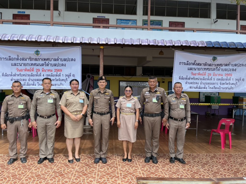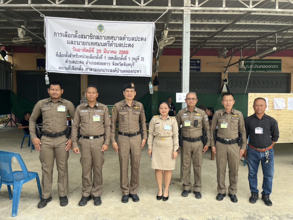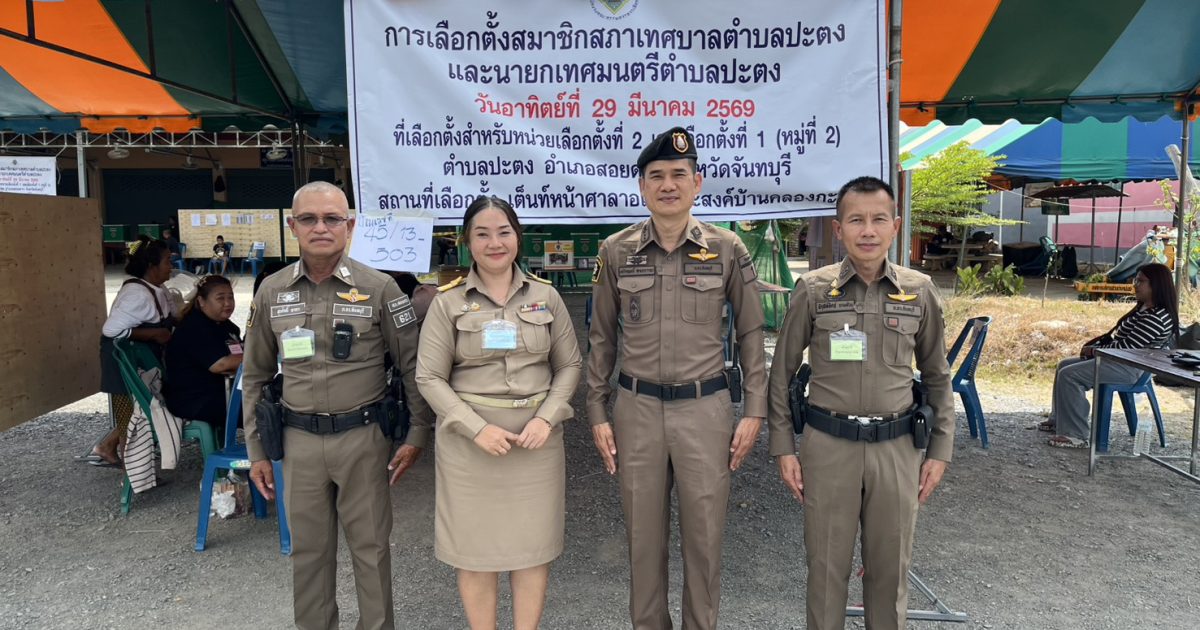 พ.ต.อ.เกริกฤทธิ์ สายวรรณะ ผกก.สภ.สอยดาว ออกตรวจหน่วยเลือกตั้งสมาชิกสภาเทศบาลตำบลปะตง อำเภอสอยดาว จังหวัดจันทบุรี 29/03/2569 โดย admin / ข่าวภารกิจผู้บังคับบัญชา,งานอำนวยการ,งาน อก.เดือน มี.ค.69 วันนี้ (๒๙ มี.ค.๖๙) เวลา ๑๓.๔๐น.พ.ต.อ.เกริกฤทธิ์ สายวรรณะผกก.สภ.สอยดาวออกตรวจหน่วยเลือกตั้งสมาชิกสภาเทศบาลตำบลปะตง อำเภอสอยดาว จังหวัดจันทบุรีหน่วยเลือกตั้งที่ ๑ เขตที่ ๑ ม.๒ต.ปะตง ศาลาอเนกประสงค์บ้านคลองกะทาหน่วยเลือกตั้งที่ ๒ เขตที่ ๑ ม.๒ ต.ปะตง เต็นท์หน้าศาลาอเนกประสงค์บ้านคลองกะทาหน่วยเลือกตั้งที่ ๔,๕ เขตที่ ๑ ม.๖ ต.ปะตง โรงเรียนบ้านเขาแก้วพบเจ้าหน้าที่ตำรวจ สภ.สอยดาว พร้อมด้วยเจ้าที่ประจำหน่วยเลือกตั้งอยู่ปฏิบัติหน้าที่เหตุการณ์ทั่วไปปกติ