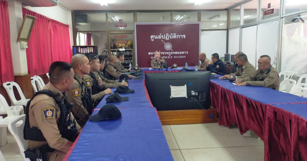 พ.ต.อ.ธราเทพ ตูพานิช รอง ผบก.ภ.จว.จันทบุรี ตรวจความพร้อมชุดปฏิบัติการ Six Man Team สภ.สอยดาว 21/04/2569 โดย admin / ข่าวประชาสัมพันธ์,ข่าวภารกิจผู้บังคับบัญชา,งานป้องกันปราบปราม,งาน ป.เดือน เม.ย.69,งานสืบสวน,งานสืบสวน เดือน เม.ย.69 วันนี้ (๒๑ เม.ย. ๖๙) เวลา ๑๑.๐๐ น. พ.ต.อ.ธราเทพ ตูพานิช รองผู้บังคับการตำรวจภูธรจังหวัดจันทบุรี ได้เข้าตรวจความพร้อมชุดปฏิบัติการ Six Man Team สถานีตำรวจภูธรสอยดาว เพื่อเตรียมความพร้อมในการปฏิบัติหน้าที่ให้เกิดประสิทธิภาพและความปลอดภัยสูงสุด โดยมี พ.ต.อ.เกริกฤทธิ์ สายวรรณะ ผกก.สภ.สอยดาว พร้อมข้าราชการตำรวจสอยดาว ให้การต้อนรับ