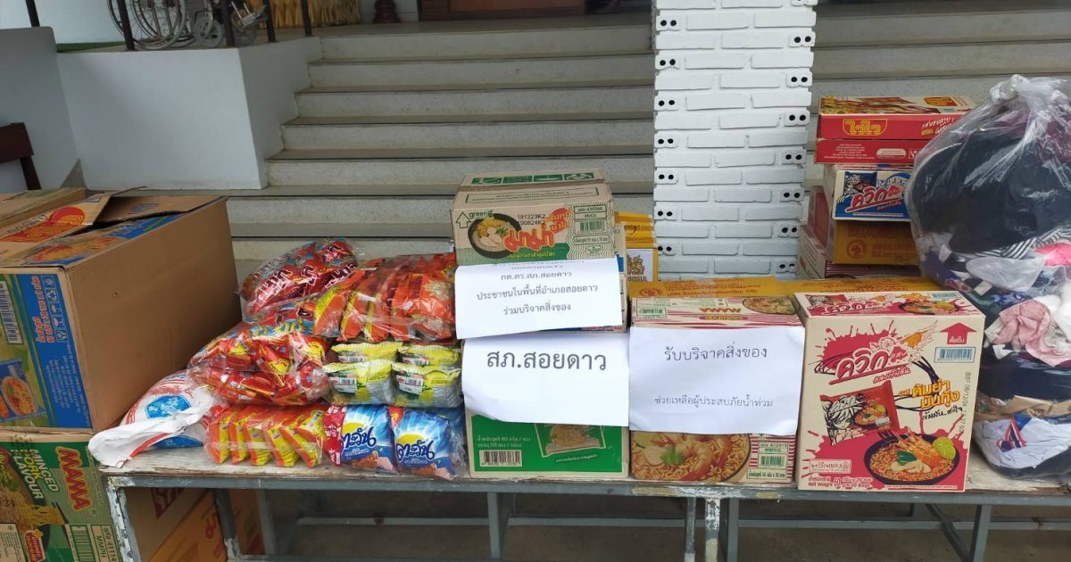 สภ.สอยดาว รับบริจาคข้าวสาร อาหารแห้ง และสิ่งของที่จำเป็นเพื่อร่วมสนับสนุนช่วยเหลือผู้ประสบภัยน้ำท่วมที่ภาคเหนือ 13/09/2567 โดย admin / ไม่มีหมวดหมู่,ข่าวกิจกรรม วันนี้ (๑๓ ก.ย.๖๗) เวลา ๑๐.๓๐ น. พ.ต.ท.ทะยาน ตาตะคุ รอง ผกก.(สอบสวน) สภ.สอยดาว เป็นตัวแทนนำสิ่งของ อาหารแห้ง เสื้อผ้า ขนมแพมเพอร์ส และอื่นๆ ที่ร่วมบริจาคโดยข้าราชการตำรวจภูธรสอยดาวพร้อมครอบครัว คณะกรรมการ กต.ตร.สภ.สอยดาว และประชาชนในพื้นที่ นำส่งให้ ภ.จว.จันทบุรี เพื่อดำเนินการรวบรวมช่วยเหลือบรรเทาทุกข์ชาวเหนือที่ประสบอุทกภัยต่อไป