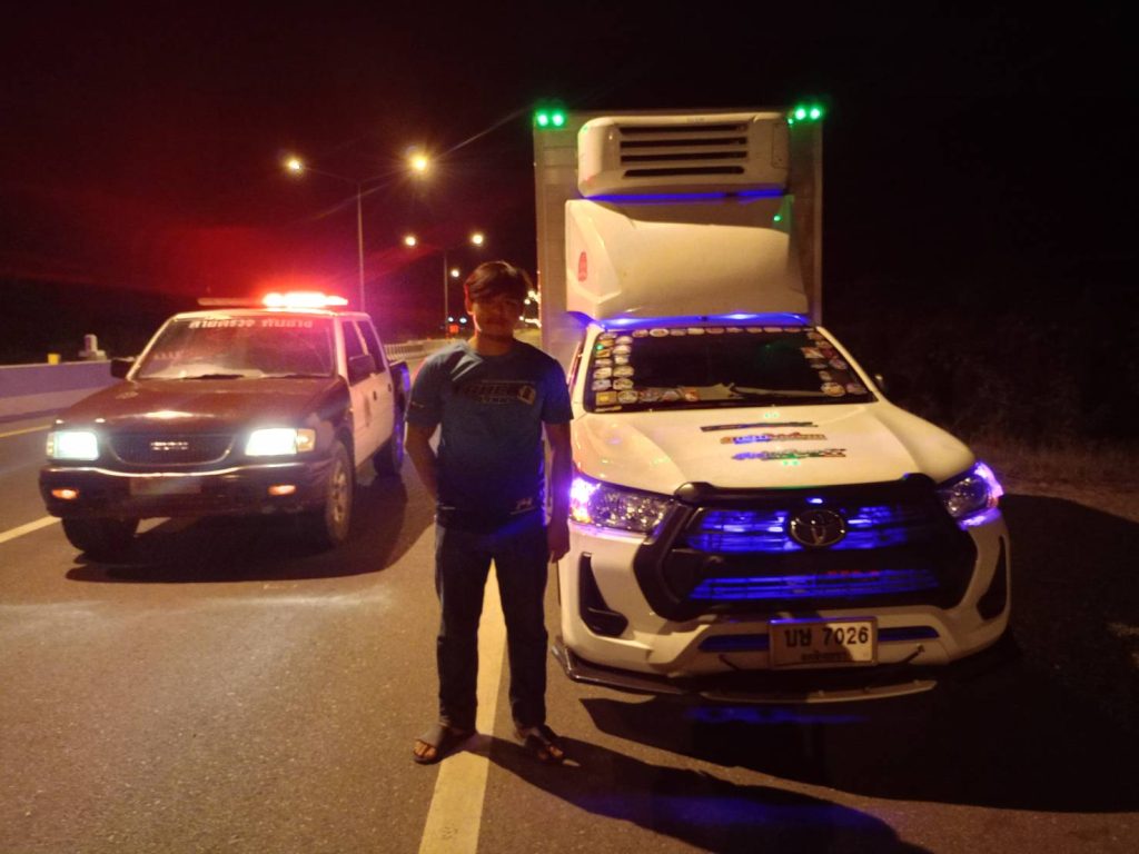 สายตรวจทับช้างตรวจสอบรถยนต์จอดเสียริมถนน 04/04/2568 โดย admin / ไม่มีหมวดหมู่,ข่าวกิจกรรม วันที่ ๔ เม.ย.๖๘ เวลา ๐๑.๑๐ น. สายตรวจตู้ยามทับช้าง ร.ต.ต.ธัญพิสิษฐ์ บัวลอย รอง สว.(ป) สภ.สอยดาว ได้ออกตรวจในพื้นที่ พบรถบรรทุก ๔ ล้อ จอดอยู่่ริมถนนสาย ๓๑๗(จันทบุรี-สระแก้ว) บริเวณหน้าวัดใหม่ชัยมงคล ต.ทับช้าง อ.สอยดาว จว.จันทบุรี จึงเข้าไปตรวจสอบ พบยางรถข้างหลังด้านขวาแตกฉีกขาด เนื่องจากเหยียบเศษเหล็กที่หล่นอยู่บนถนน เจ้าของรถได้ติดต่อประสานรถสำรองมาเปลี่ยนถ่ายสิ่งของ และประสานเพื่อนให้มานำรถกลับเป็นที่เรียบร้อย