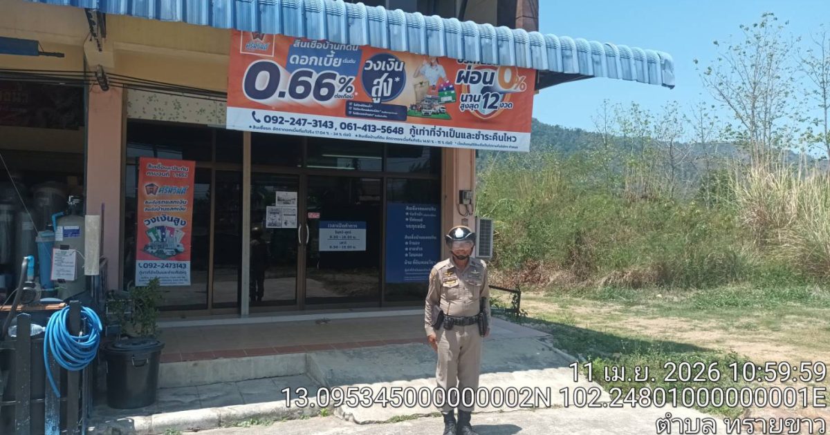 สายตรวจบ้านตามูน-ตชต.ทรายขาว ออกตรวจตามโครงการฝากบ้่านไว้กับตำรวจฯ 11/04/2569 โดย admin / ข่าวประชาสัมพันธ์,งานป้องกันปราบปราม,งาน ป.เดือน เม.ย.69 วันนี้(๑๑ เม.ย.๖๙) เวลา ๑๑.๐๐ น.สายตรวจตามูน-ตชต.ทรายขาว โดย ร.ต.ท.ศรีวิชัย ทองละมุน รอง สว.(ป.) สภ.สอยดาว พร้อมตำรวจอาสา ออกตรวจตามโครงการฝากบ้านใว้กับตำรวจ ศรีสวัสดิ์ เงินด่วน ทันใจเหตุการณ์ทั่วไปปกติ