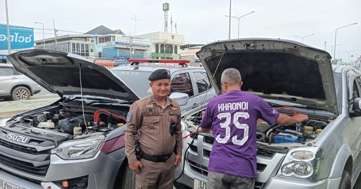 สายตรวจรถยนต์ให้การช่วยเหลือรถประชาชนแบตหมด 16/04/2568 โดย admin / ไม่มีหมวดหมู่,ข่าวกิจกรรม วันที่ ๑๖ เม.ย.๖๘ เวลา ๐๘.๒๕ น.ร.ต.ท.วัชรศักดิ์ กระมล ดาว ๒๐, ร.ต.ต.ธนากร เดชยศดิ สายตรวจรถยนต์ ให้การช่วยเหลือประชาชนรถยนต์แบตหมดสตาร์ทไม่ติด ให้การช่วยเหลือโดยการพ่วงแบต รถยนต์สามารถเดินทางต่อไปได้