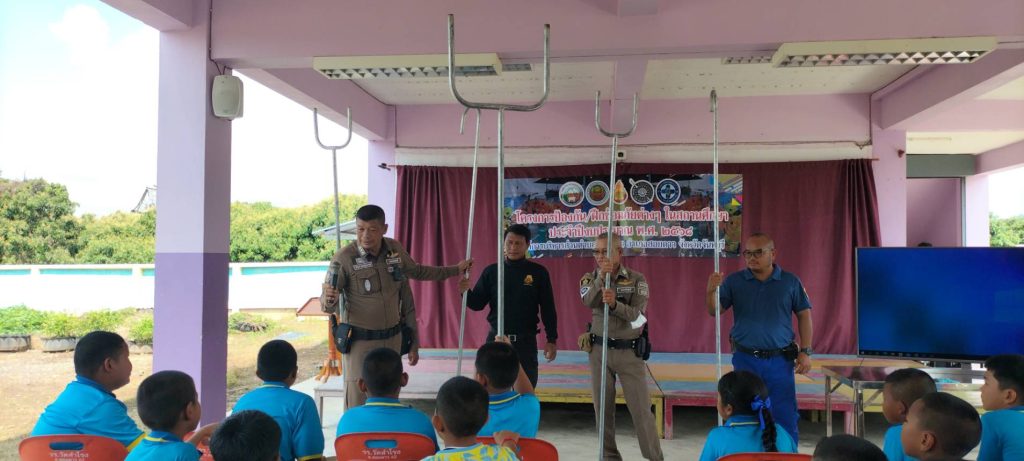 วันนี้ (๒๓ พ.ค.๖๘) เวลา ๐๘.๓๐ น.ภายใต้การอำนวยการของ พ.ต.อ.ไพทูรย์ ปาปะคัง ผกก.สภ.สอยดาว,พ.ต.ท.ก้องเกียรติ เฟื้องทอง รอง ผกก.ป.สภ.สอยดาว,พ.ต.ท.ประเทือง เยาวพันธ์ สวป.สภ.สอยดาว ได้มอบหมายให้ ร.ต.อ.วิรัตน์ เกตุสุวรรณ์ รอง สวป.สภ.สอยดาว,ร.ต.ท.สุรศักดิ์ ผากา รอง สว(ป.)สอยดาว,ด.ต.สมพร จันทร์เจ้า ผบ.หมู่ ป.สภ.สอยดาว,ด.ต.หญิงสุชานันท์ บุญญรภาภัทร์ ผบ.หมู่ป.สภ.สอยดาว ชุดชุมชนยั่งยืนร่วมกับ อบต.ทรายขาว ออกให้ความรู้แก่นักเรียน ร.ร.บ้านสำโรง