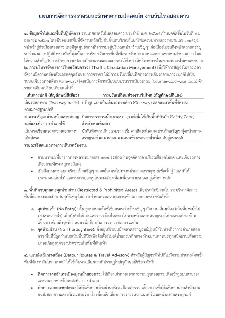 แผนการจัดการจราจรและรักษาความปลอดภัย งานวันไหลสอยดาว