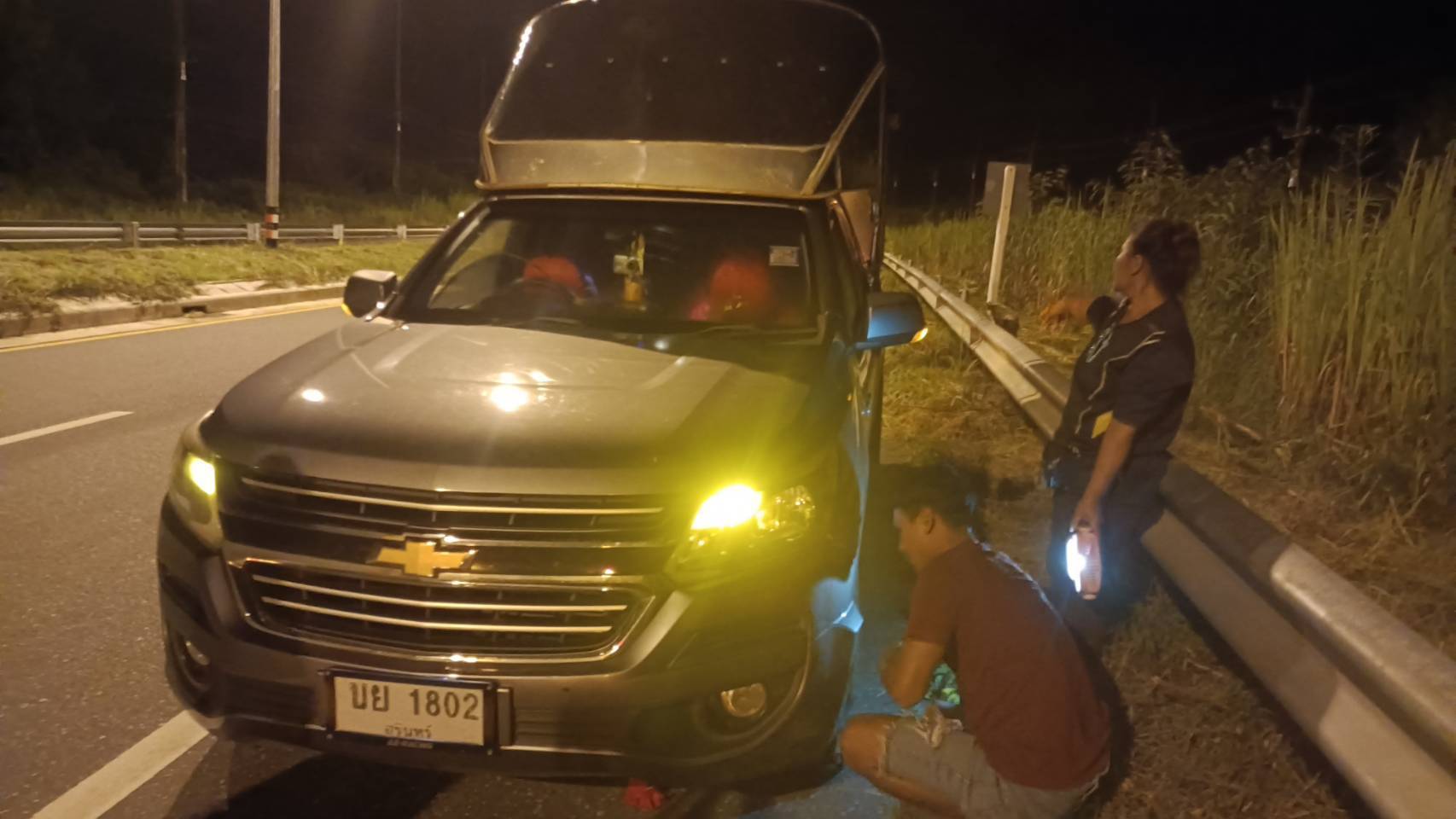 วันที่ ๓ ต.ค.๖๗ เวลา ๑๙.๓๕ น.เหตุขอความช่วยเหลือ รถยนต์กระบะยางระเบิด บริเวณถนน ๓๑๗ (จันทบุรี-สระแก้