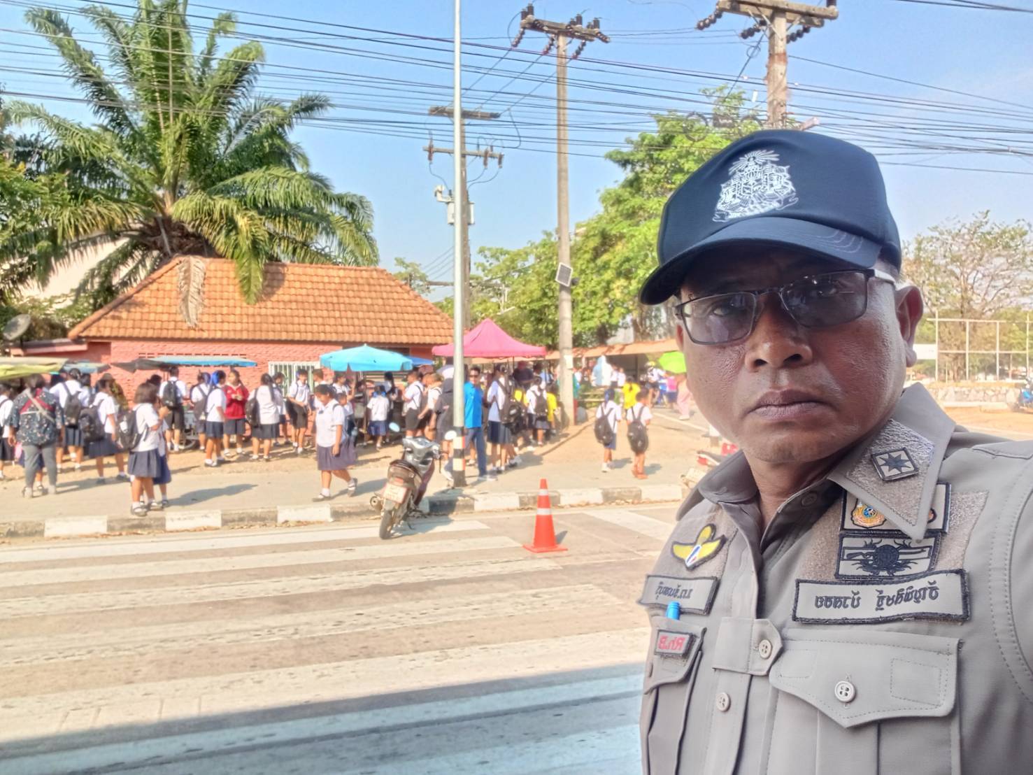 จราจรอำนวยความสะดวกด้านการจราจรบริเวณหน้าตลาดปะตง