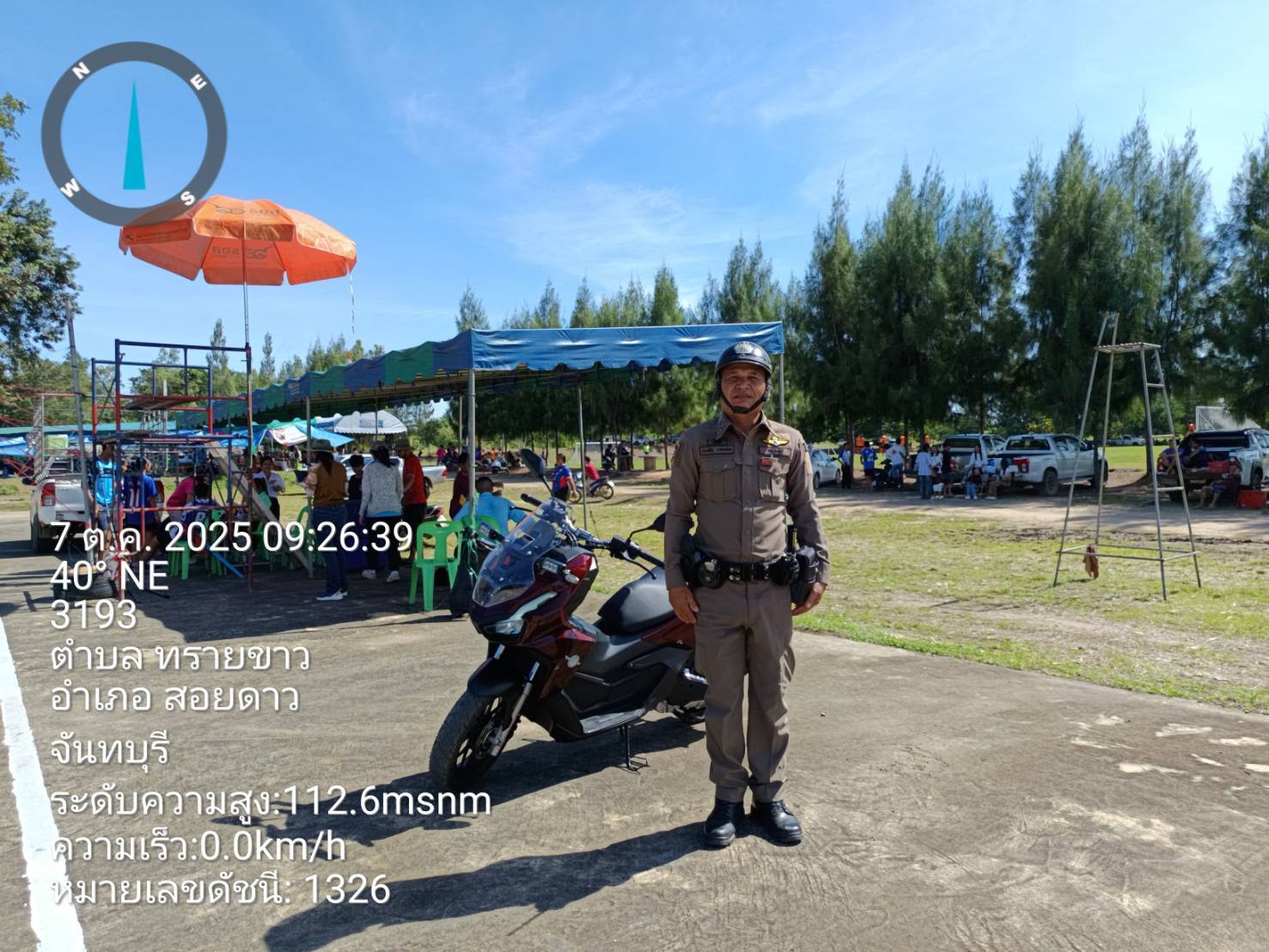 วันนี้(๘ ต.ค.๖๘) เวลา ๐๘.๔๐ น.ร.ต.ท.สุรศักดิ์ ผากา รอง สว.(ป.) สภ.สอยดาว ว.๔ ตรวจการจราจรในพื้นที่รั