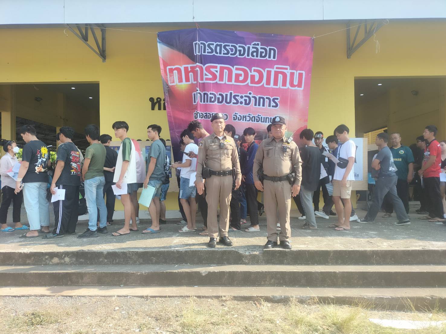 พ.ต.อ.เกริกฤทธิ์ สายวรรณะ ผกก.สภ.สอยดาว ออกตรวจสถานที่การตรวจเลือกทหารกองเกินเข้ากองประจำการ ประจำปี ๒๕๖๙